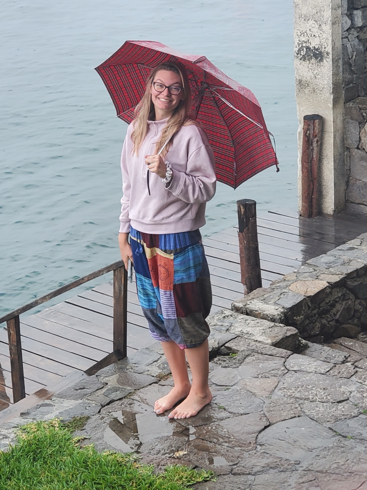 Roger brought an umbrella down, and Shaylee opted to stay dry.
