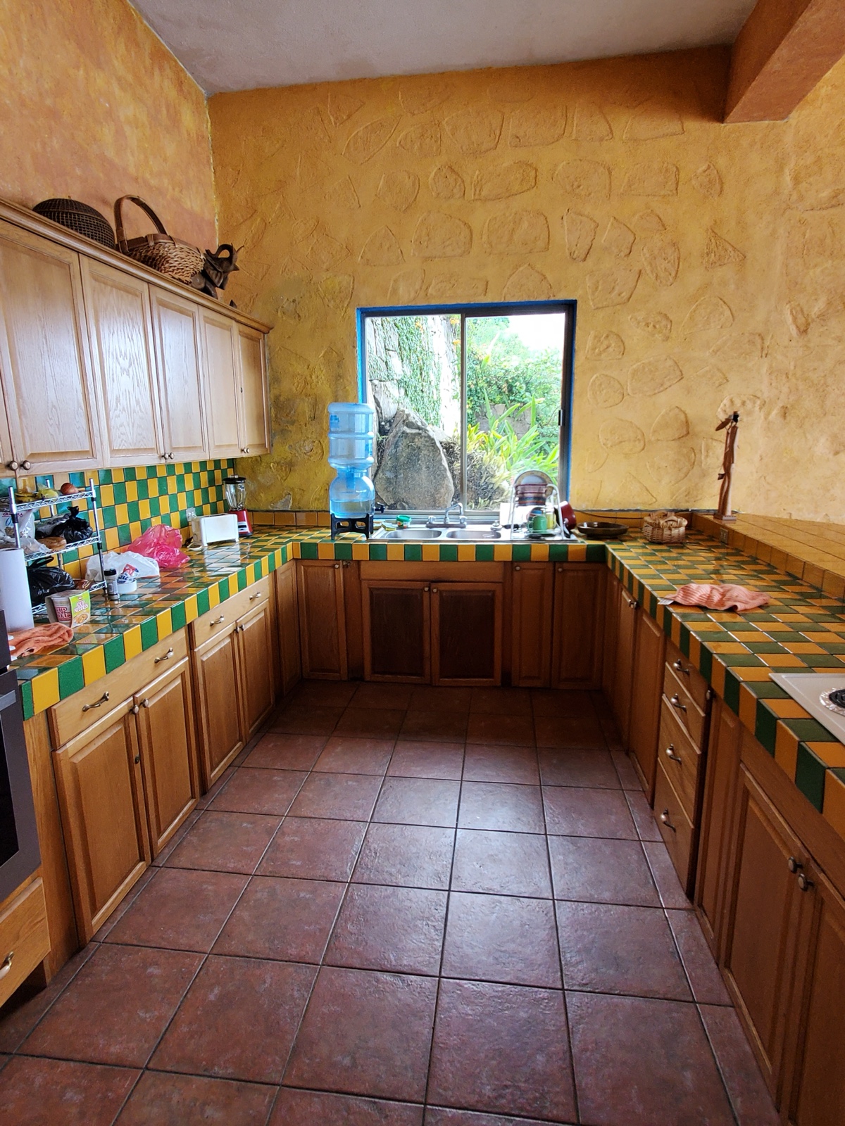 The kitchen was green and yellow, as was much of the house. (And we appreciated the big jug of drinking water there).
