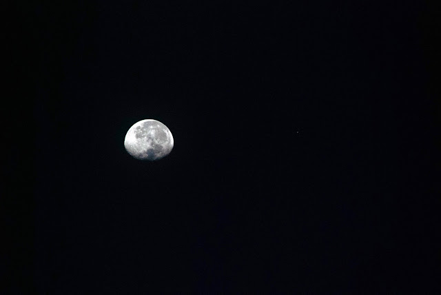 With appropriate filtering, Jared caught a picture of the moon that morning.