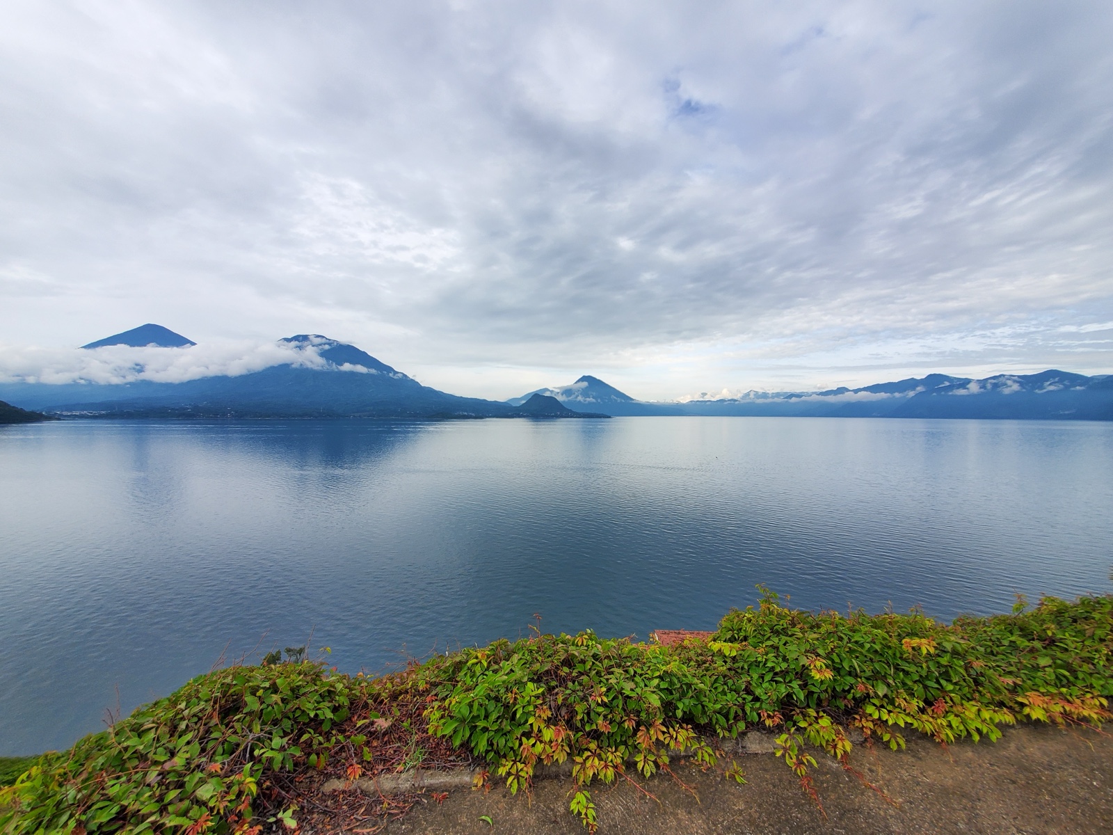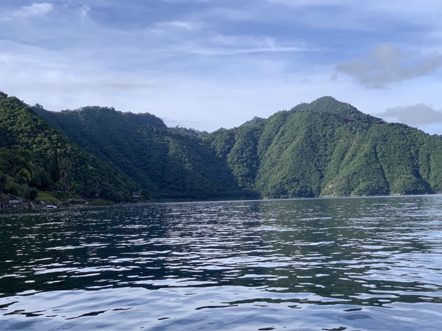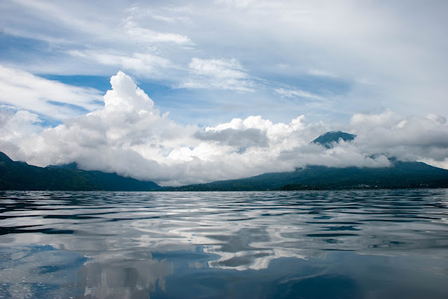 The water was beautiful, with its reflections of the sky, clouds and volcanoes.