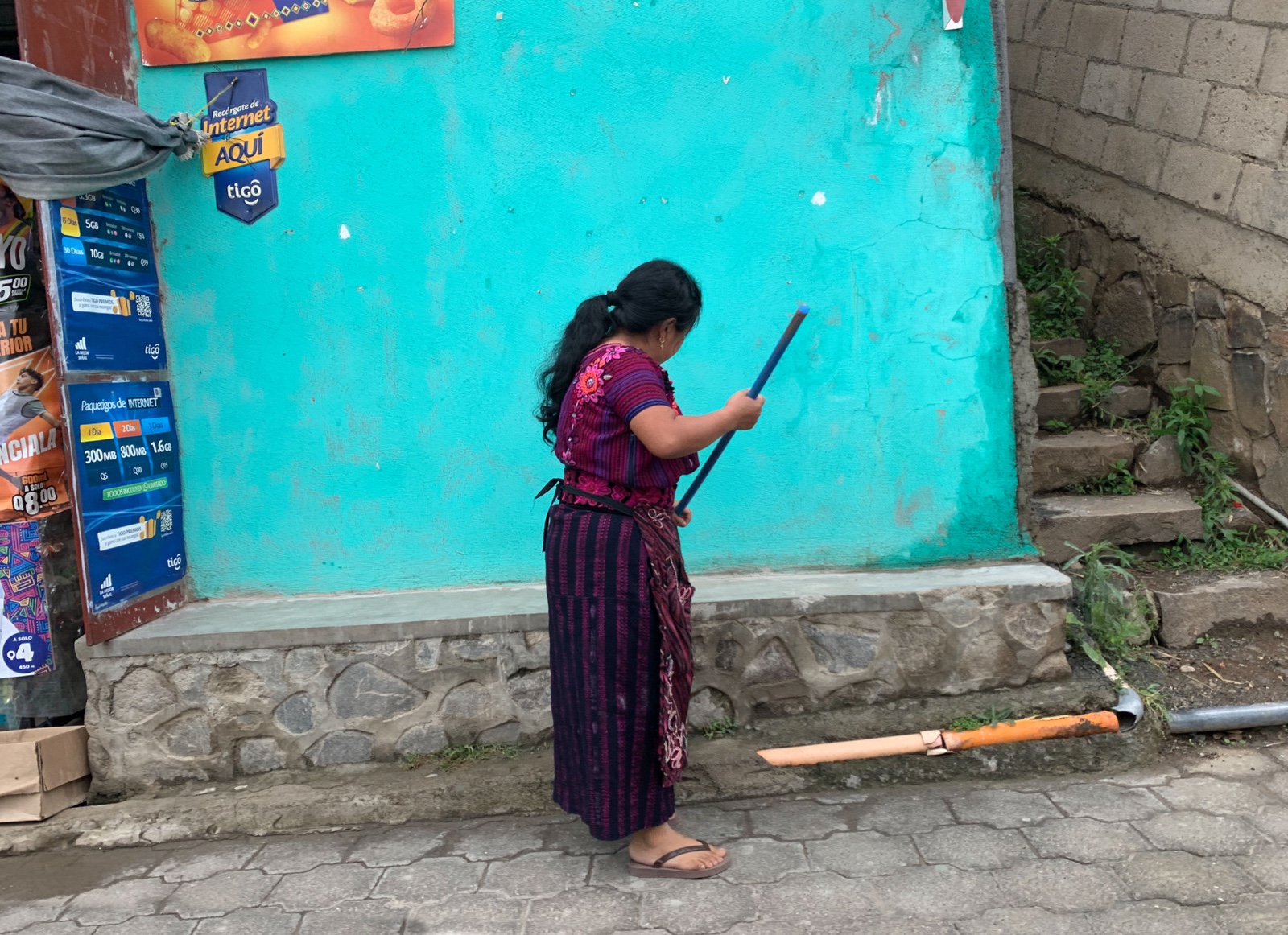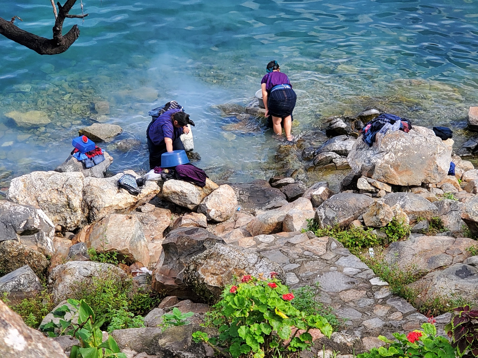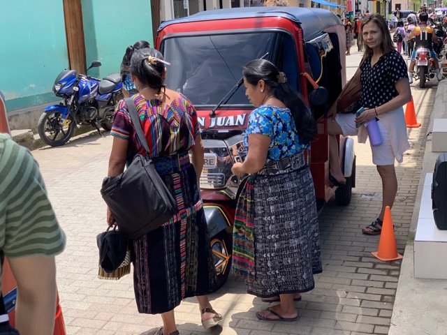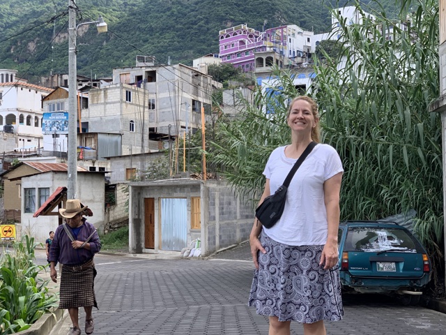 We had arranged to meet a boat at 9am that morning to take us to tour some villages around the lake, so after breakfast, we headed down to the dock in San Antonio Palopó. We saw people in traditional dress going about their daily business.