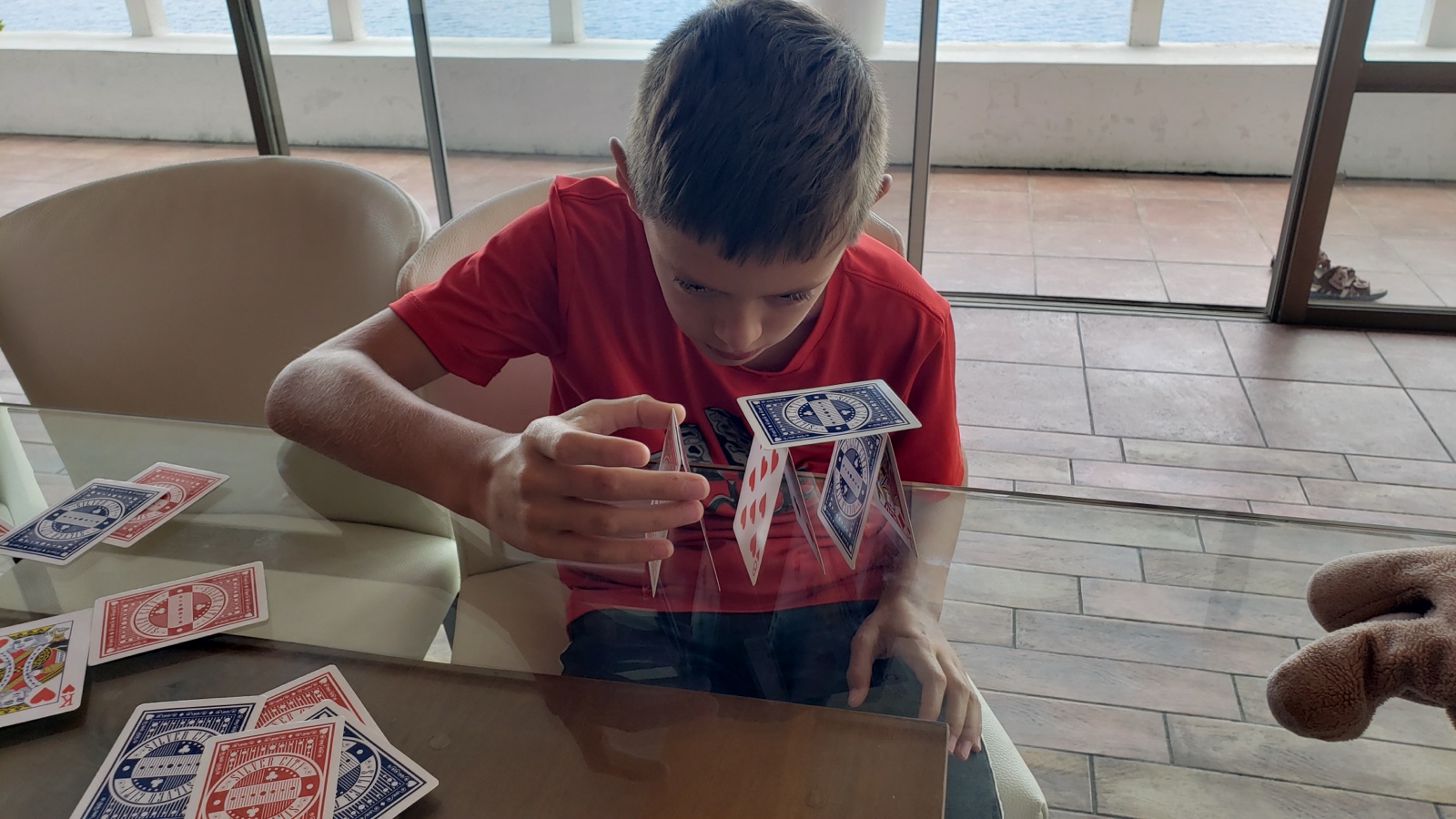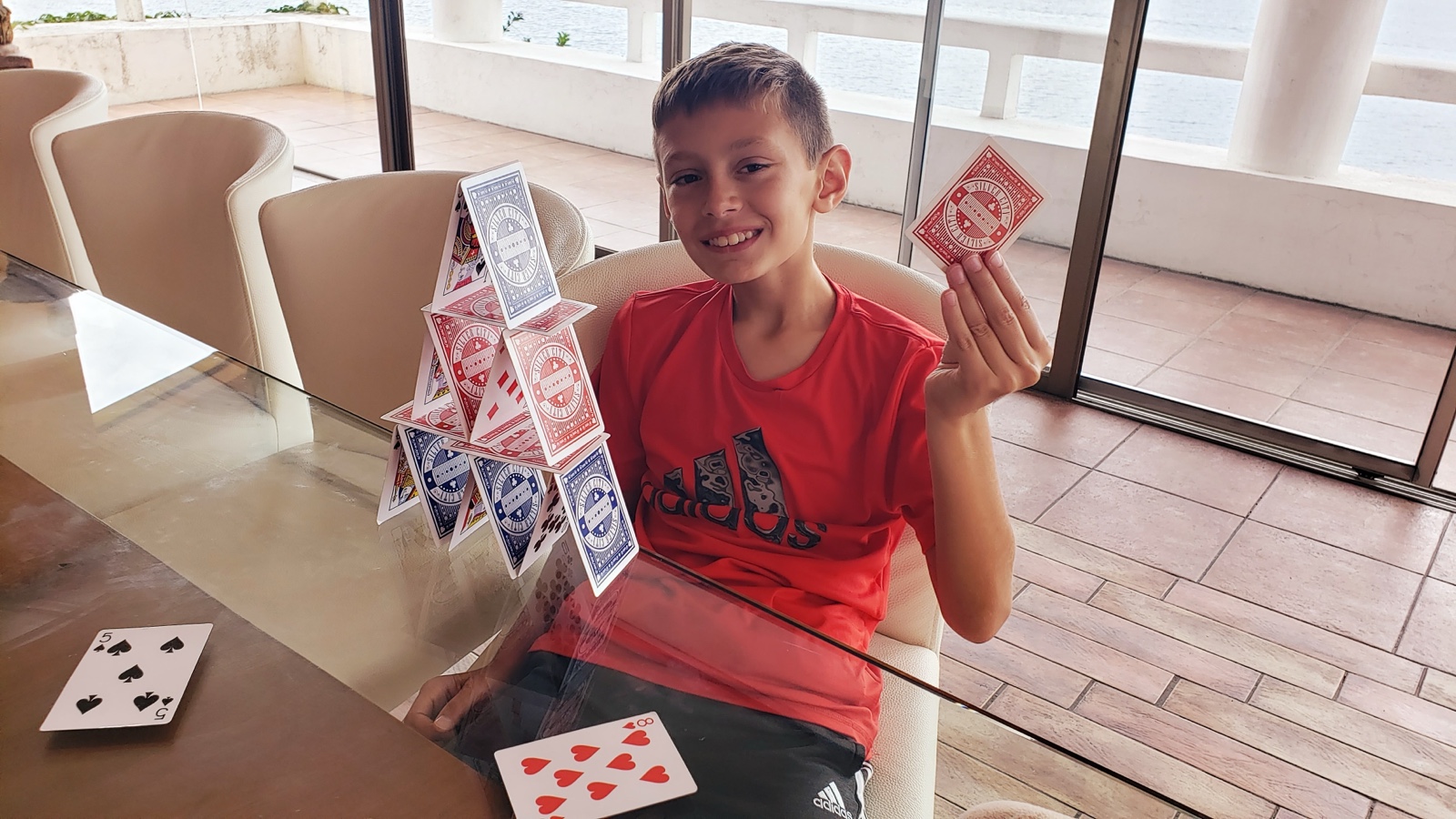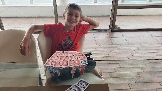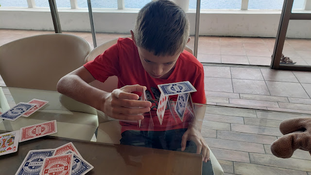 While all of that was going on, Roger was hanging out with Jason back at the house. Jason eventually felt better, and built some houses of cards.