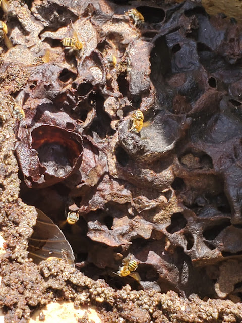 There were little beehives there with small bees flying all around. The guy said not to worry about being stung. I decided I liked my seat better than Mike's, since he was right by the bees.