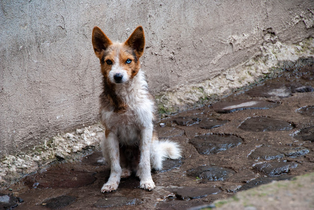 Jared got this interesting picture of a dog with two colors of eyes.
