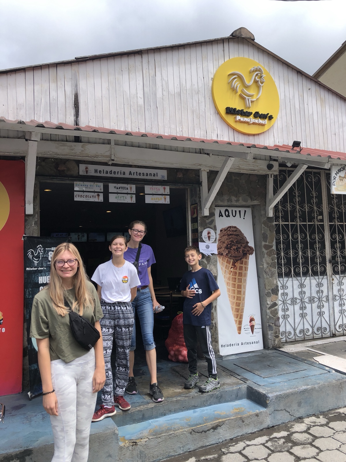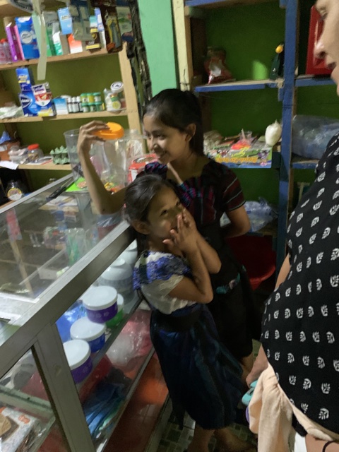 We went into a shop to buy water and soda, and these little sisters talked with us and giggled.