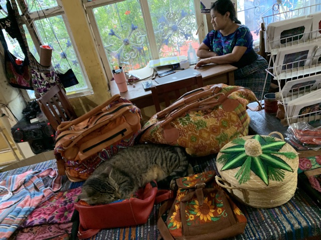 As we walked by this table, I said, "...Y este es un gato tradicional," ("...And this is a traditional cat"), as though this was part of the tour. All the gals there laughed.