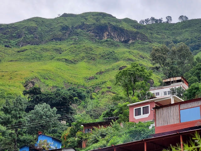The green hills looking down on this little town are really steep.
