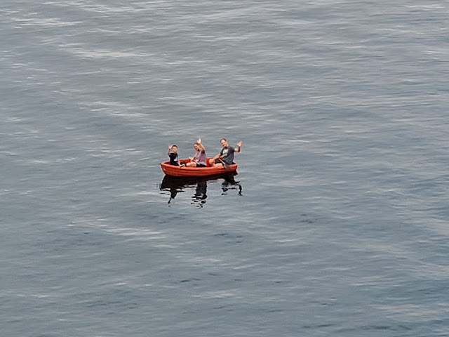 The next morning, Sharon & Roger took Jason out on the little orange boat.