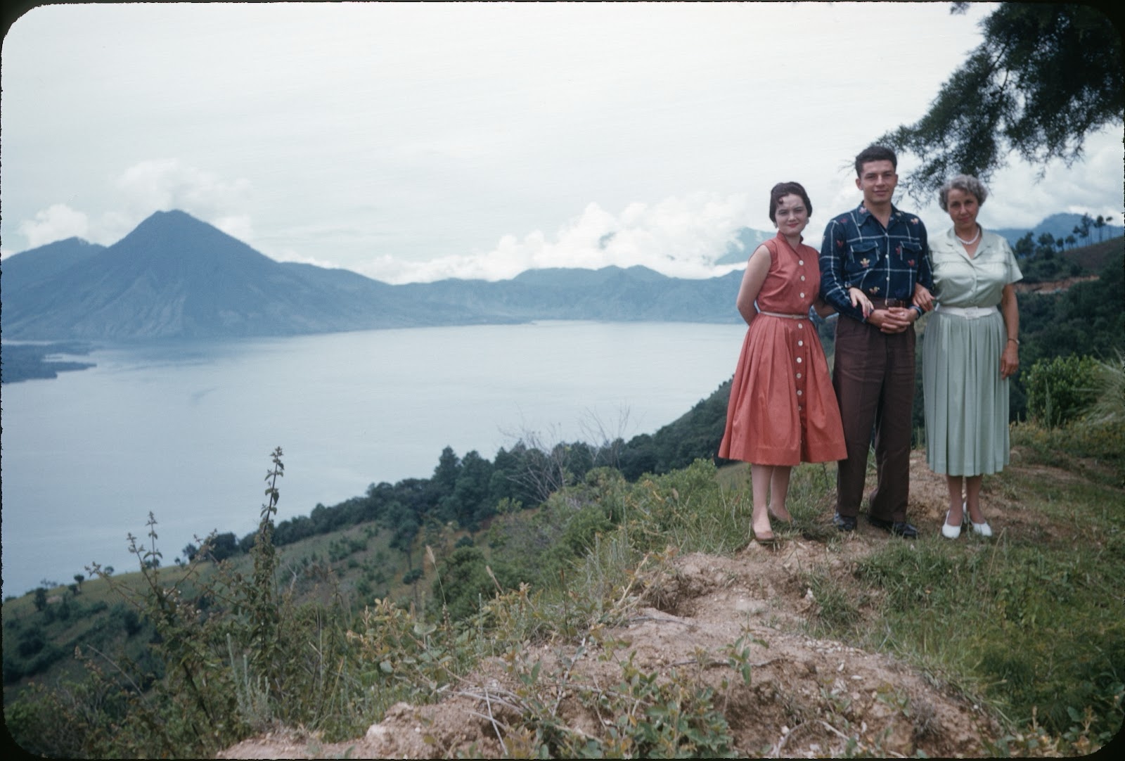 | Lilly & Carlos Perez with Thelma Merrill. Lake Atitlán, 1955. |