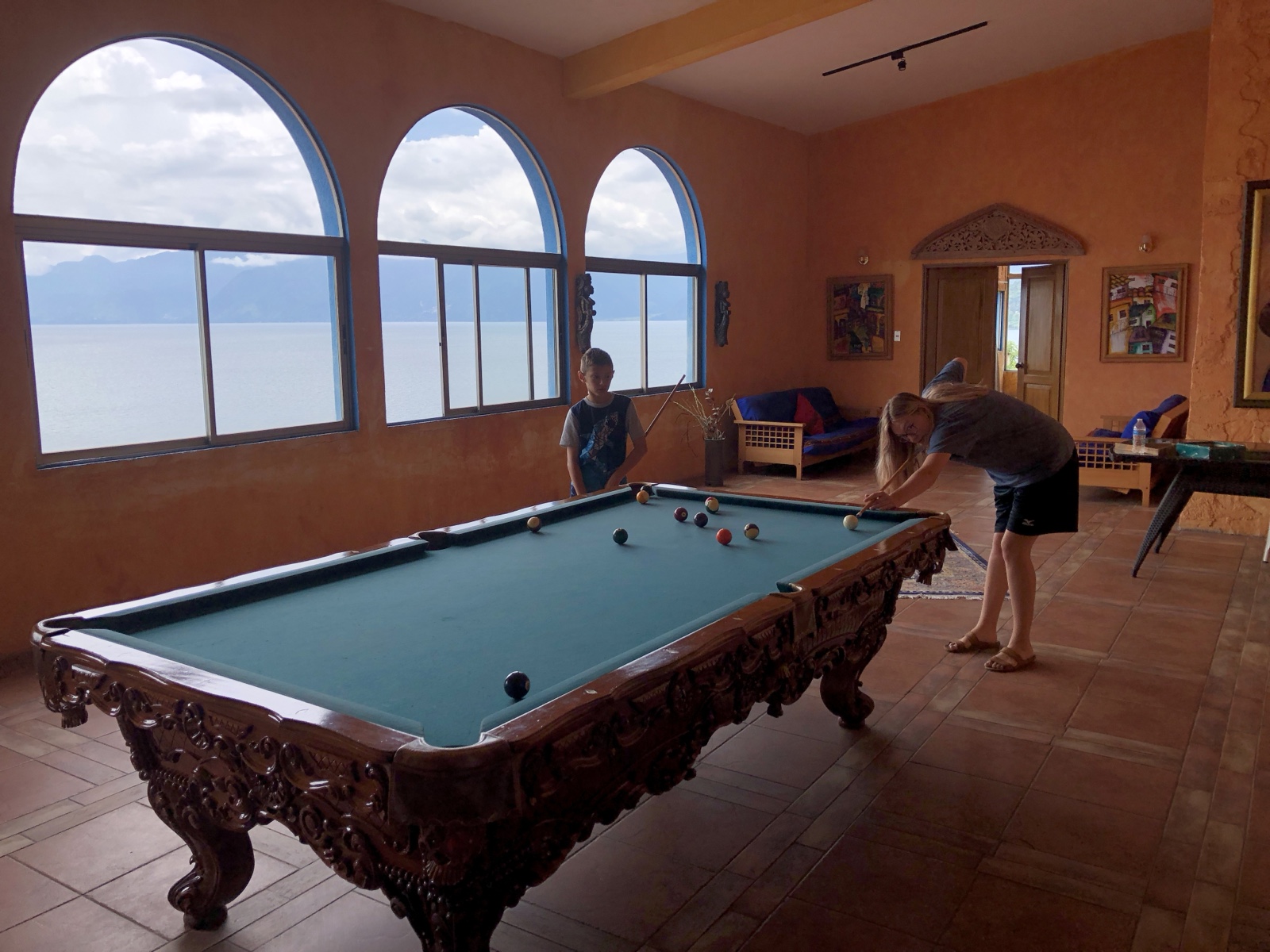 They also played a little pool upstairs.