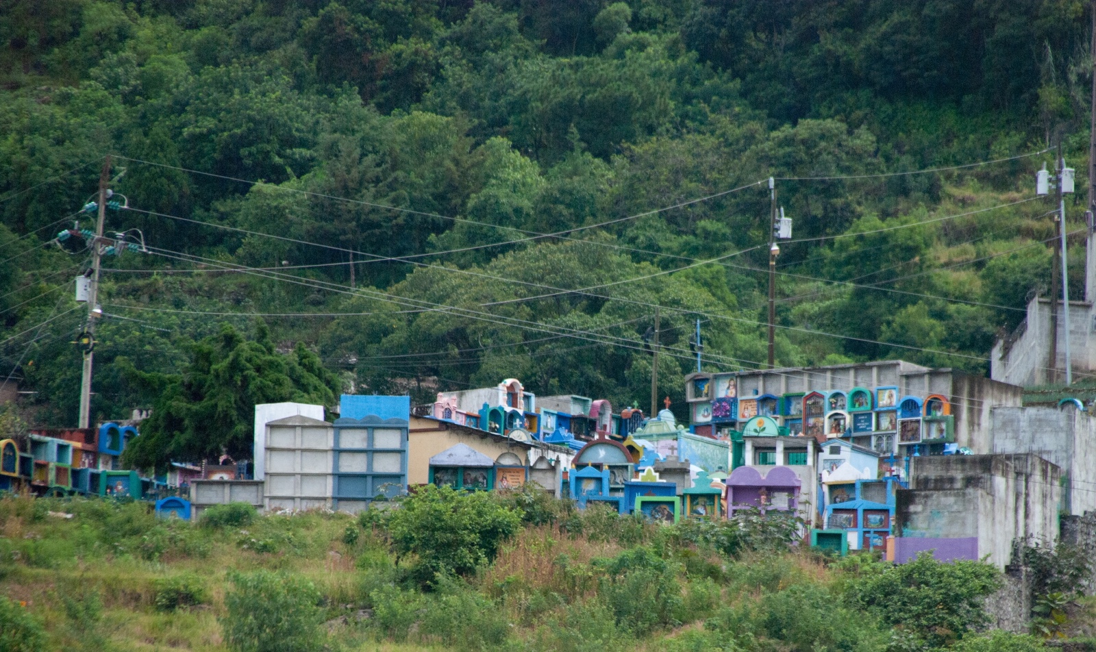Jared was able to zoom in on this cemetery, where you can see brightly painted mausoleums, like we had expected to find in Antigua.