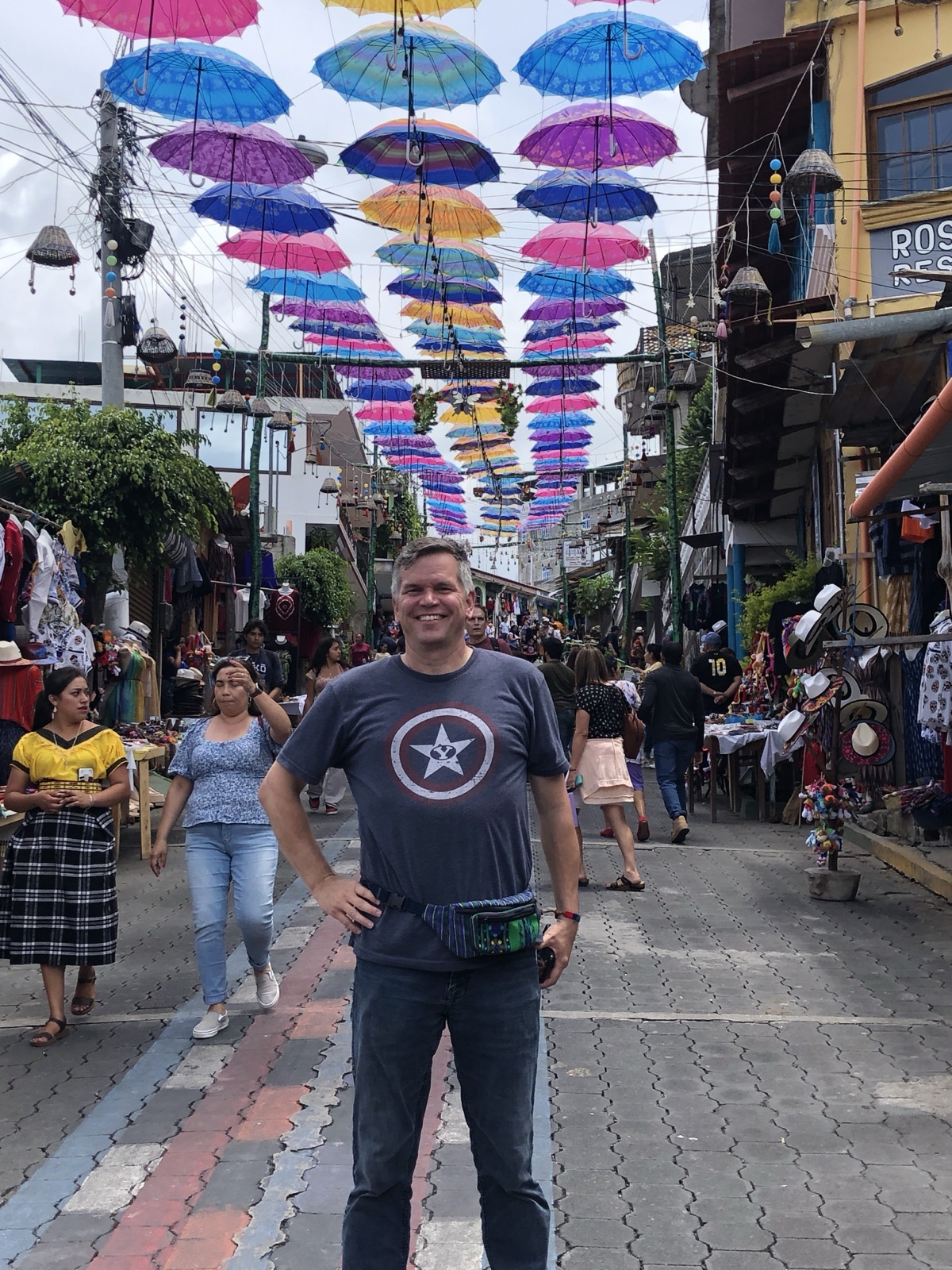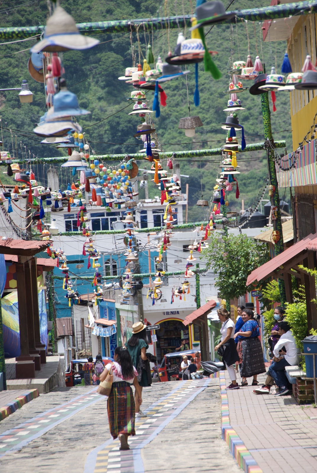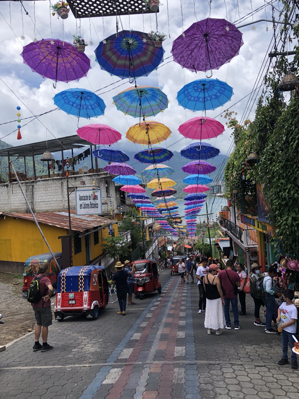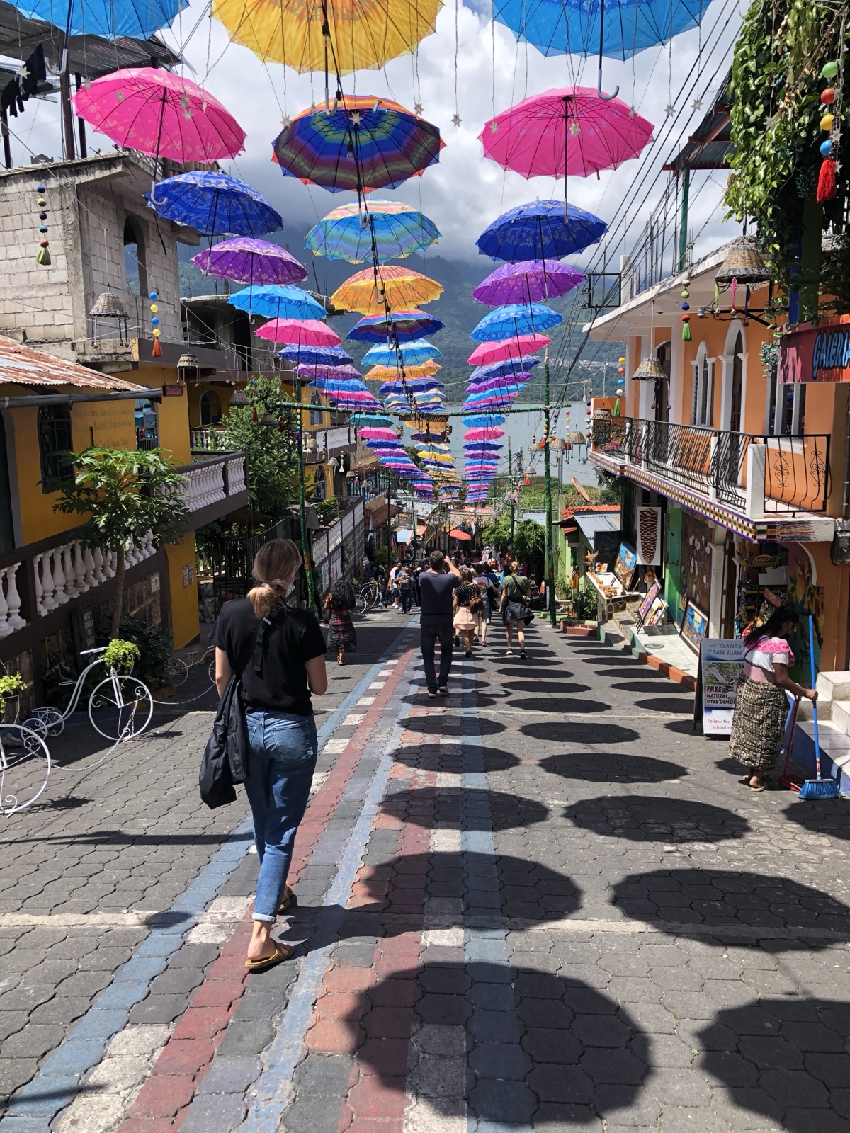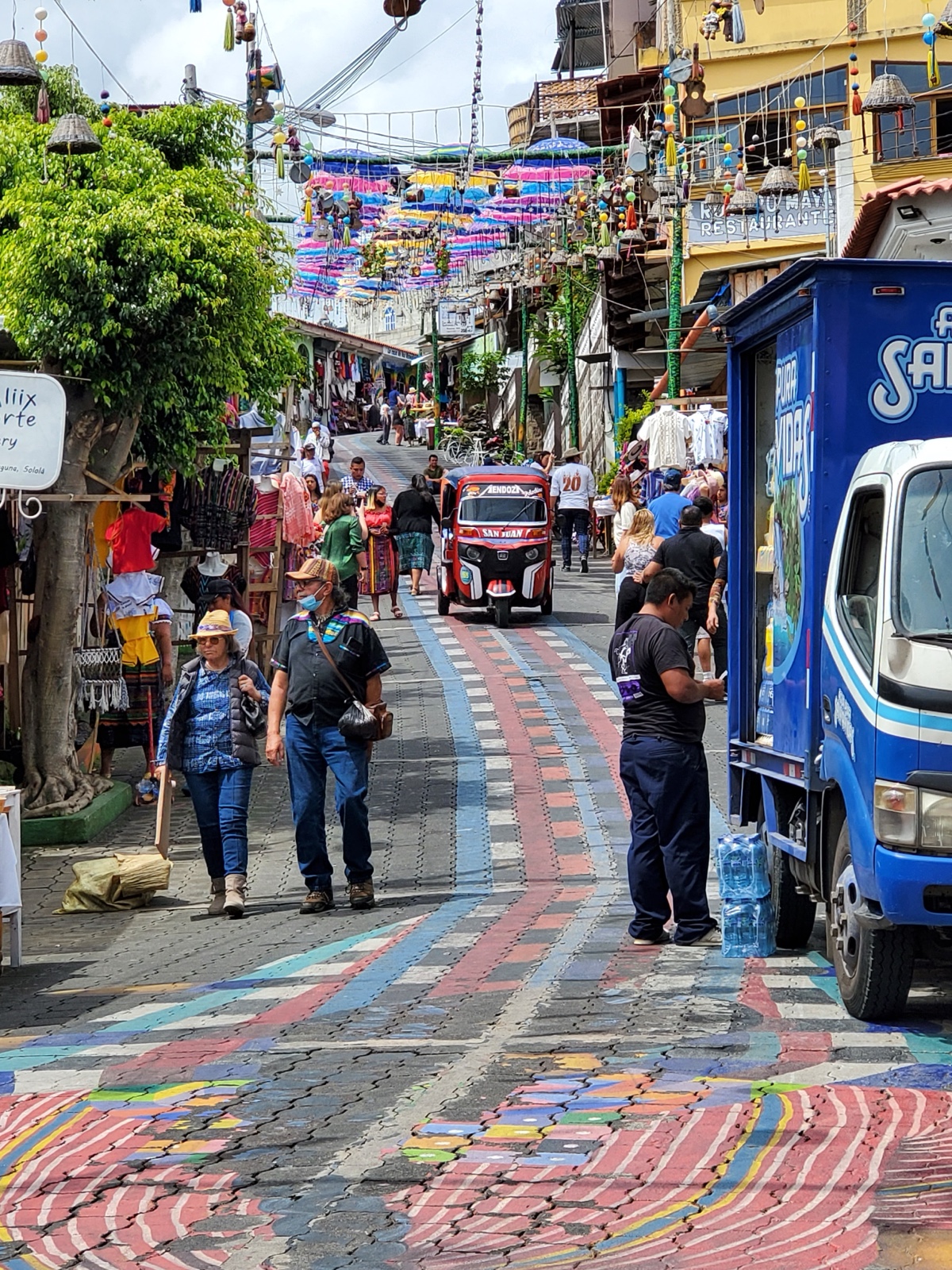 San Juan was a very colorful town, with brightly painted streets and various things hanging above the street in different areas.