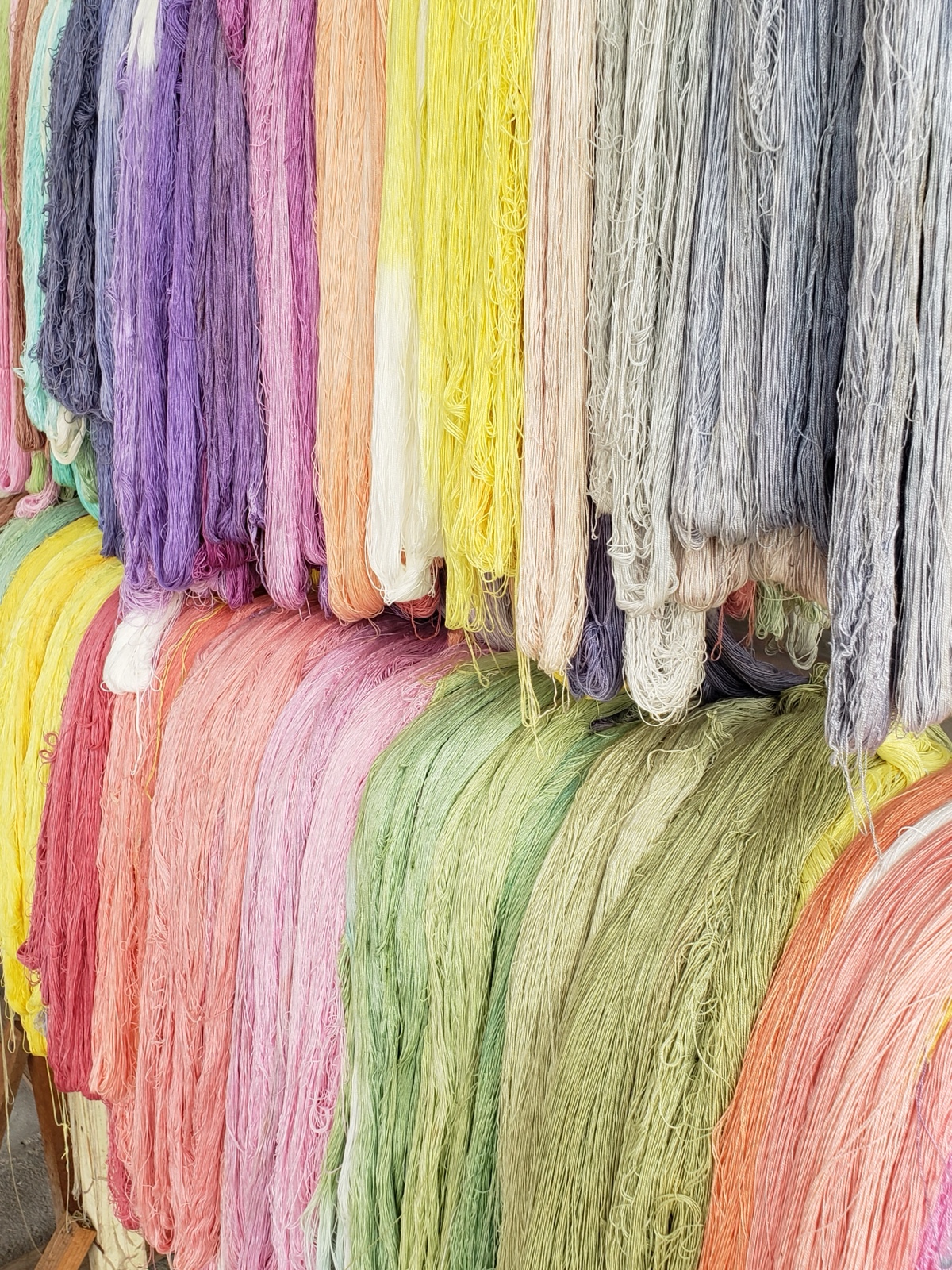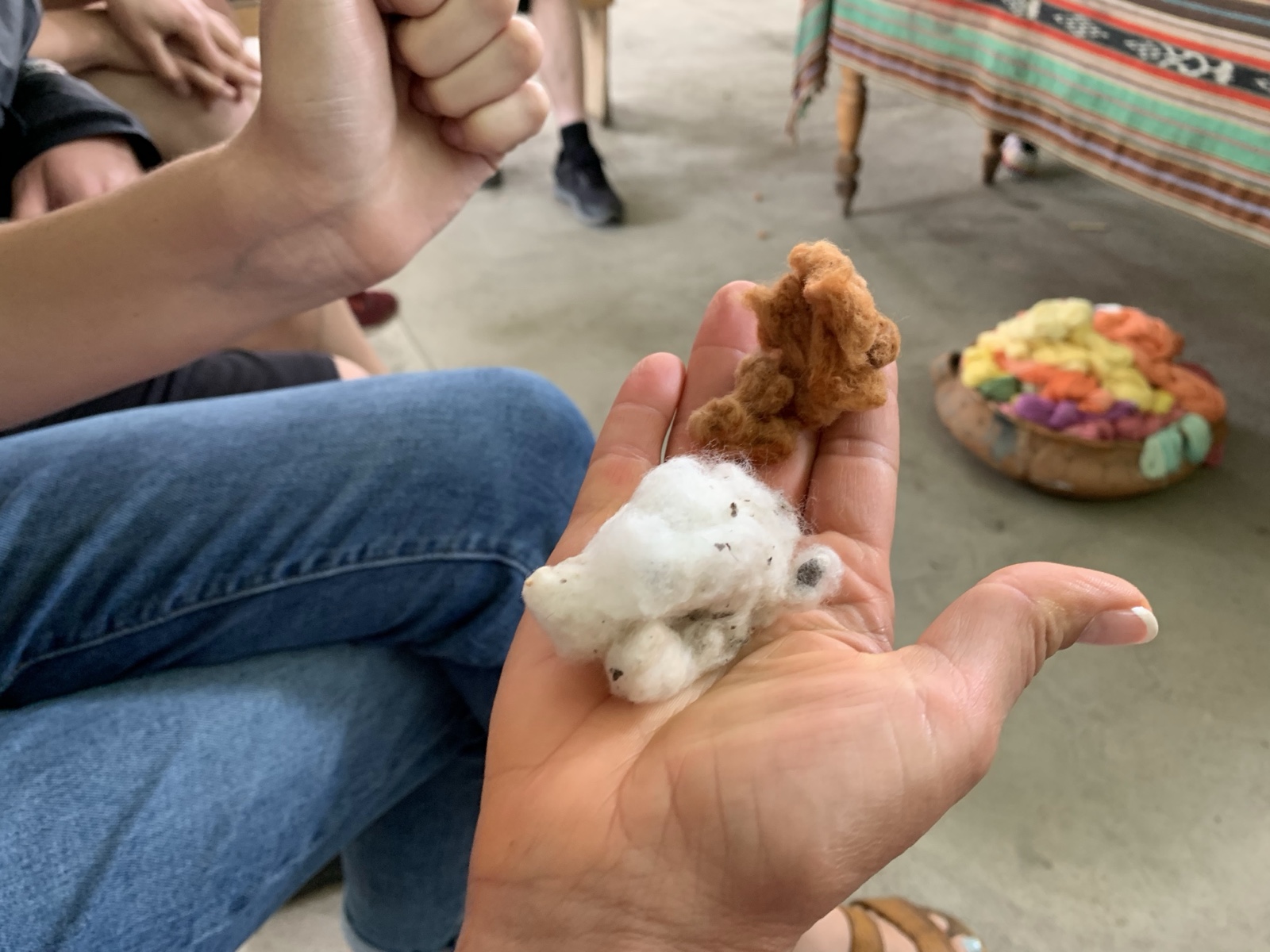 The gal told us what was used to create the dye for each of the colors. Most of them were plants, but the red color was made from roly-poly bugs!