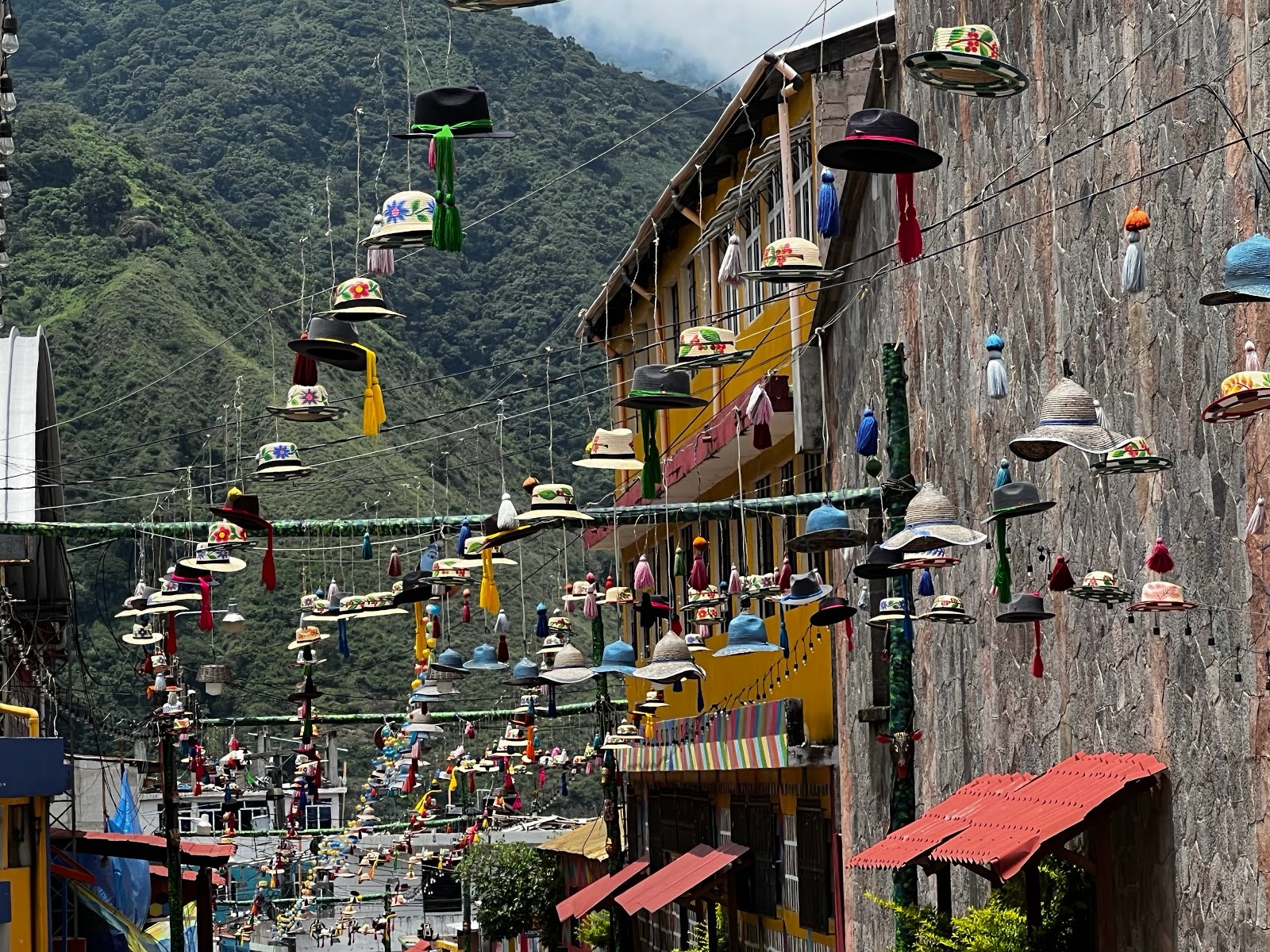 One street had hats hanging over it.