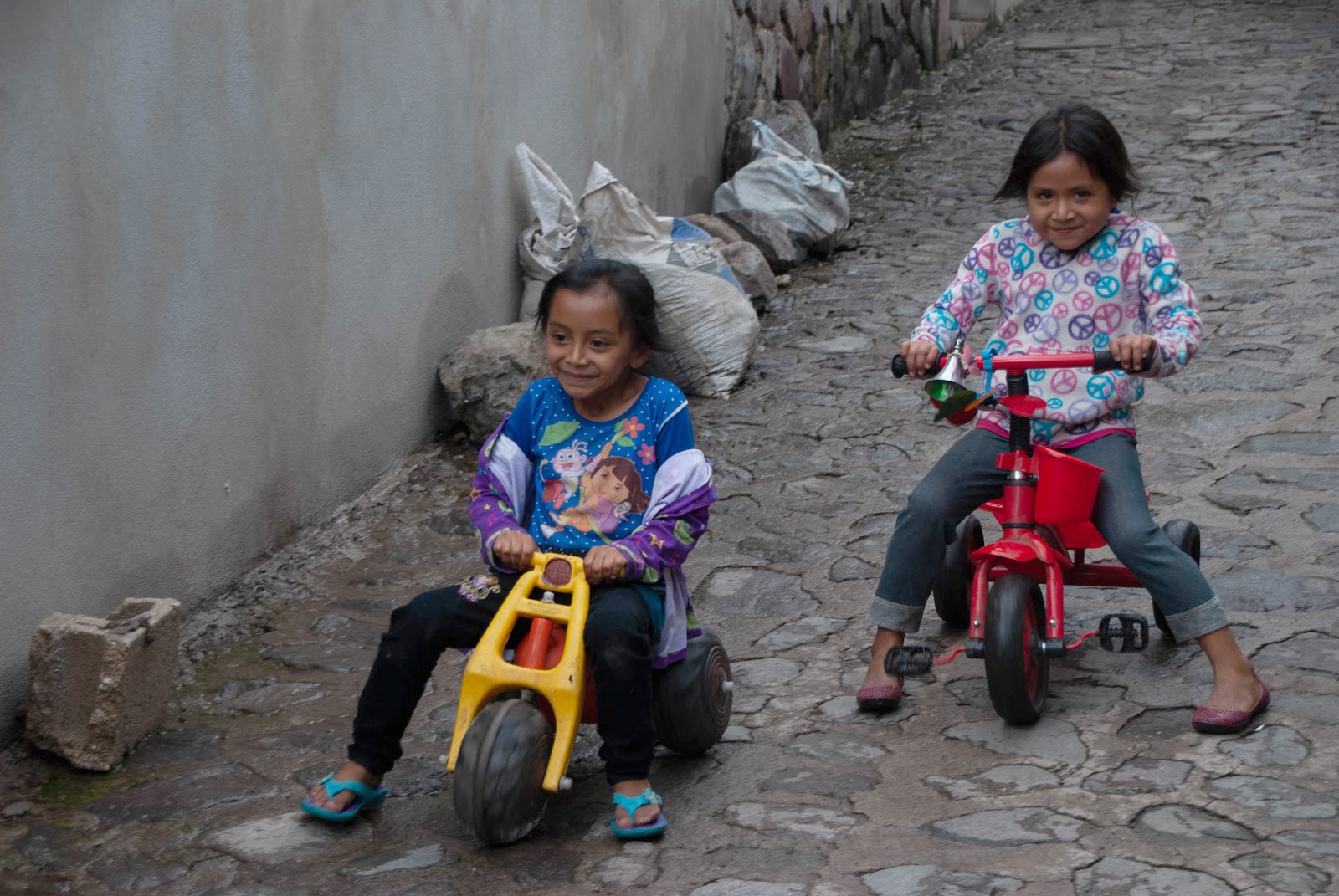 We saw these two adorable girls zooming down the main road with wild abandon, using the soles of their shoes as brakes.