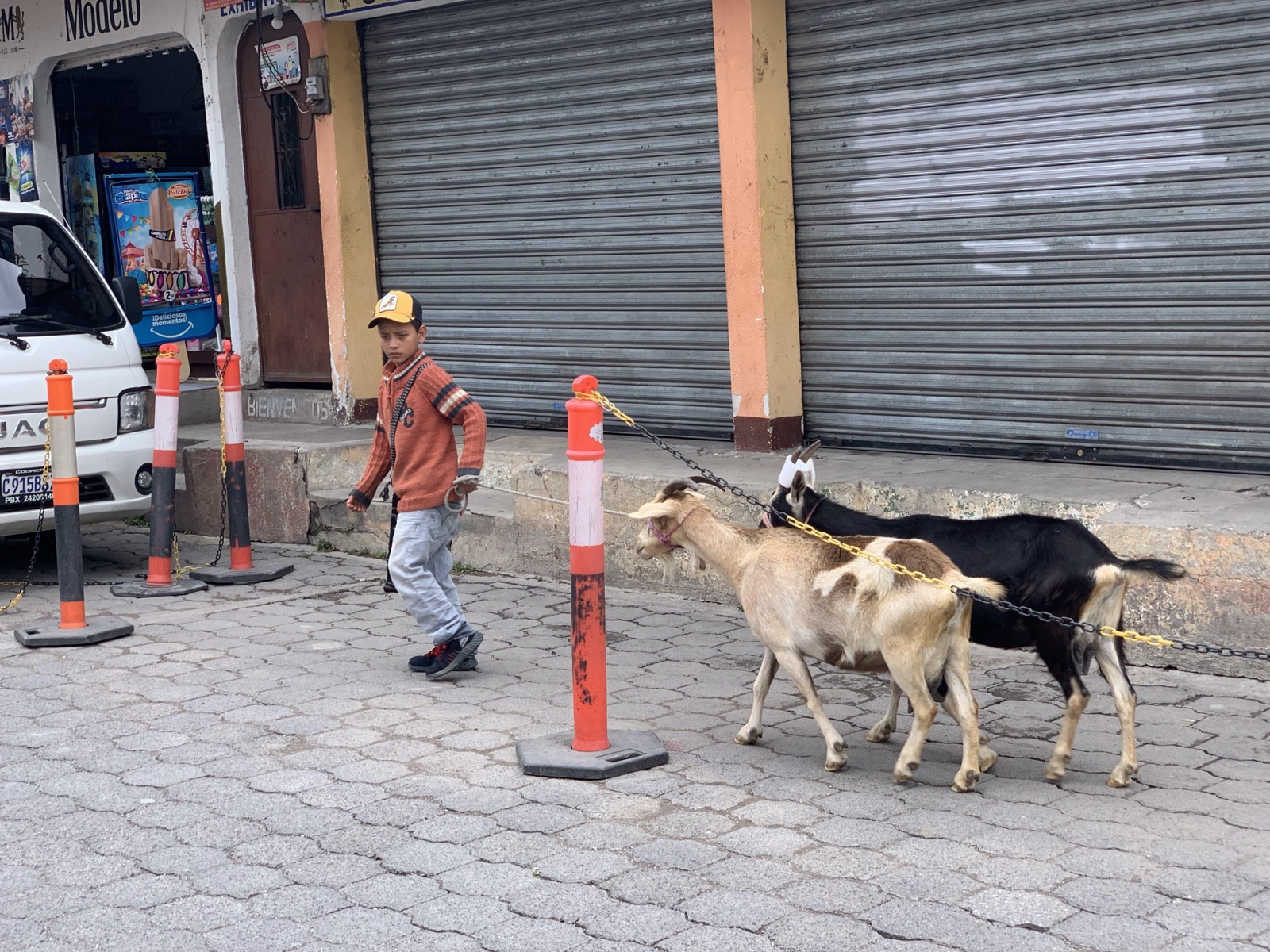 Along the way, we saw this boy leading a couple of goats down the street.