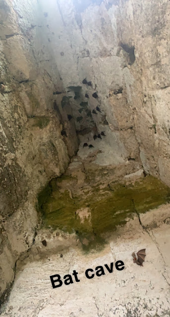 This 3-minute video starts with our first introduction to bats and scorpion spiders in the North Acropolis. You can actually hear the bats chirp as they use echolocation to find their way around (assuming your speakers and ears are working well enough). I have included a few slow motion clips I got of the bats flying around, too. I love how in one scene, Sharon is nervous about going in where there are more bats, and doesn't realize that they are flying around right behind her!