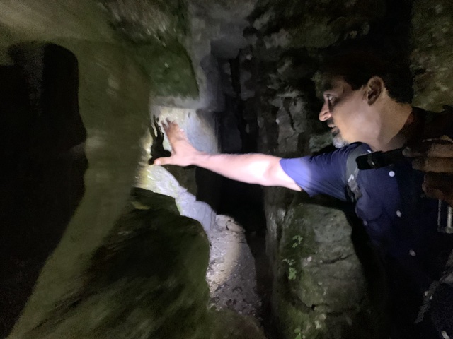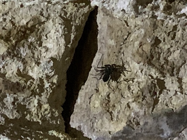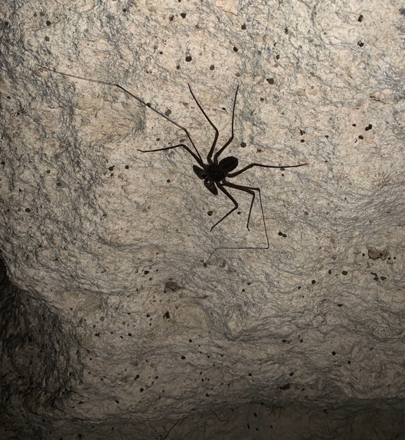 There were scorpion spiders on the wall (including one you can see just up and to the left of Jared).