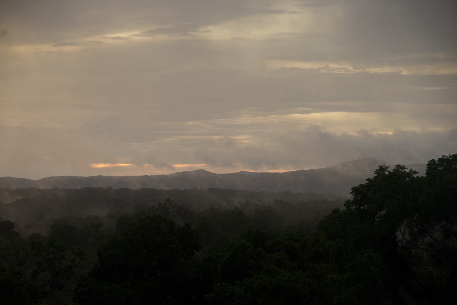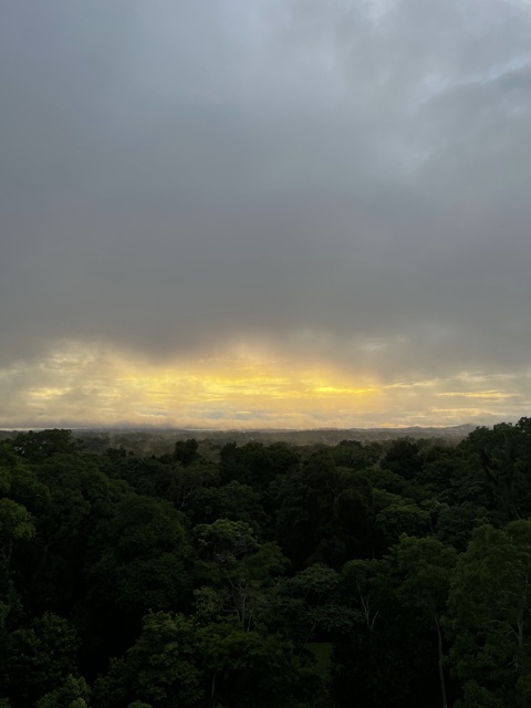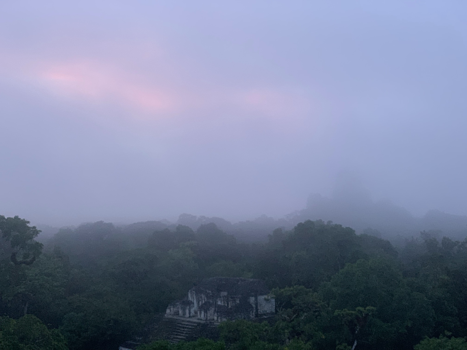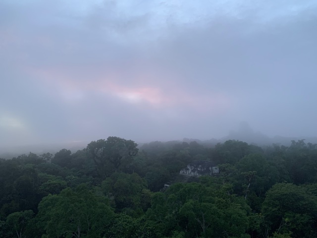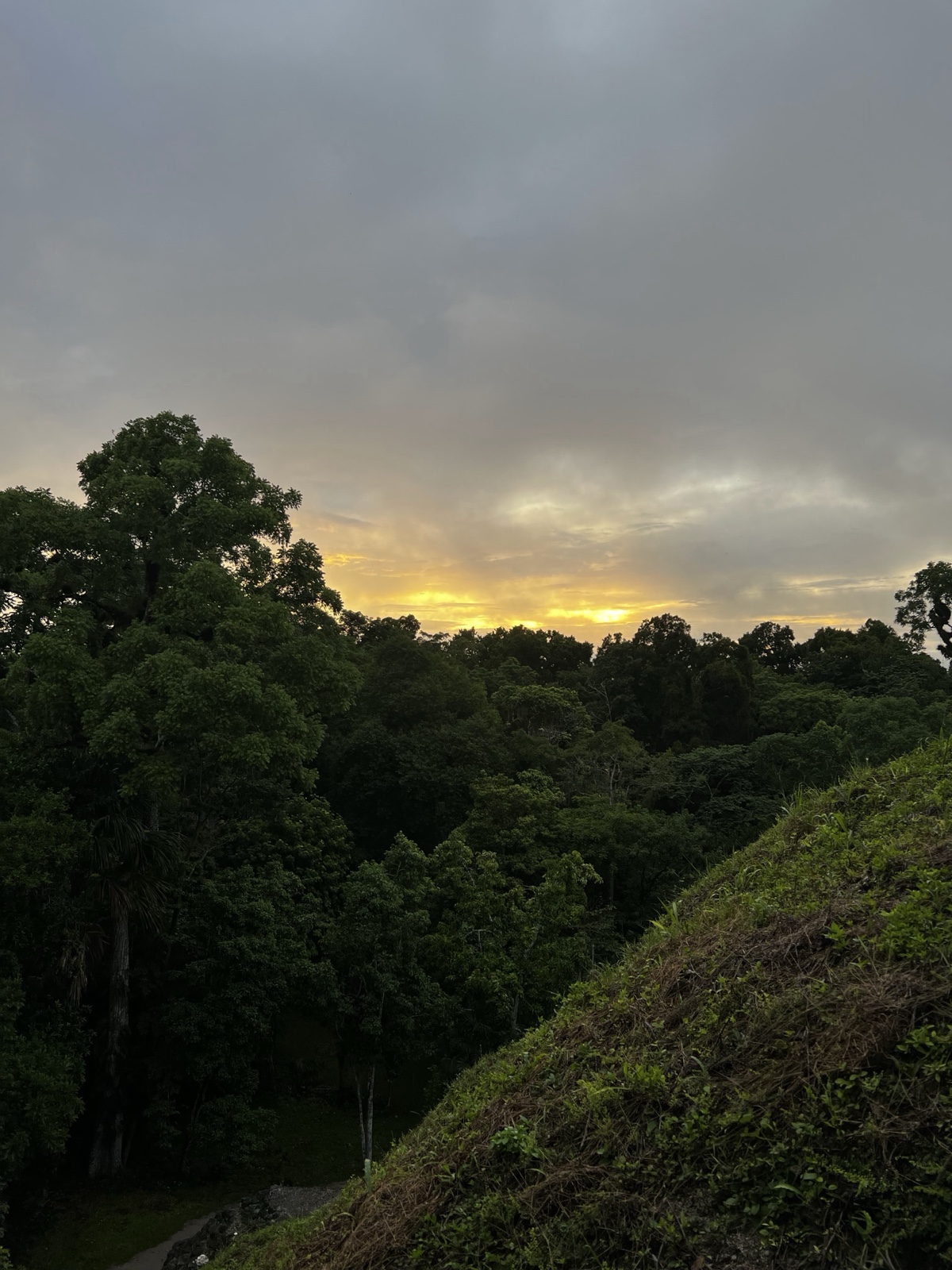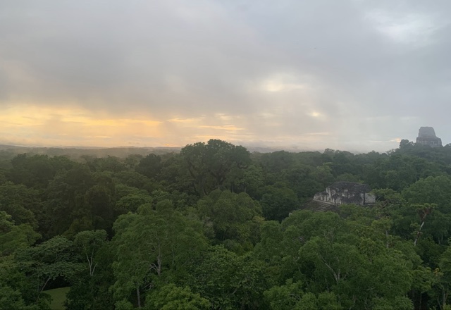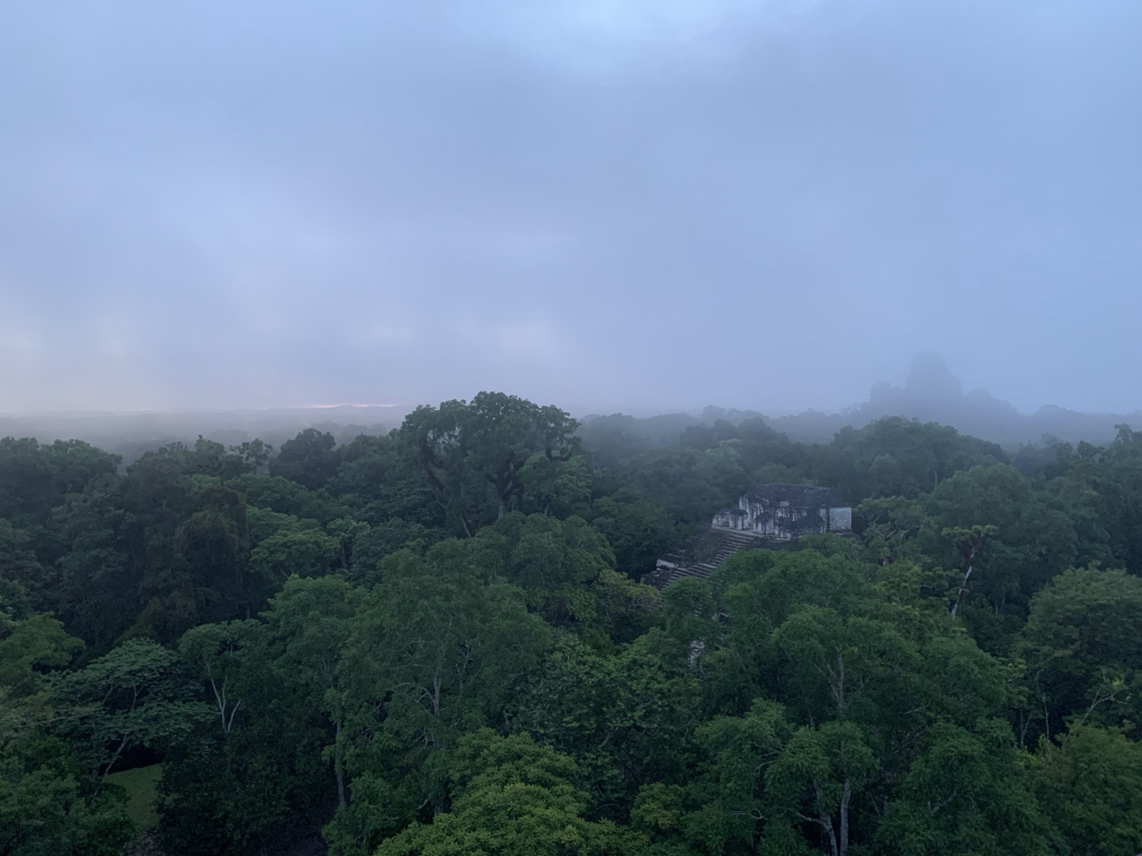 From on top of The Great Pyramid, we could look out over the jungle canopy, see a bit of sunset in the distance, and also see the tops of several of the pyramids we had visited throughout the day.