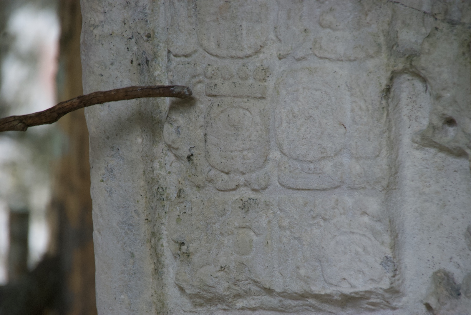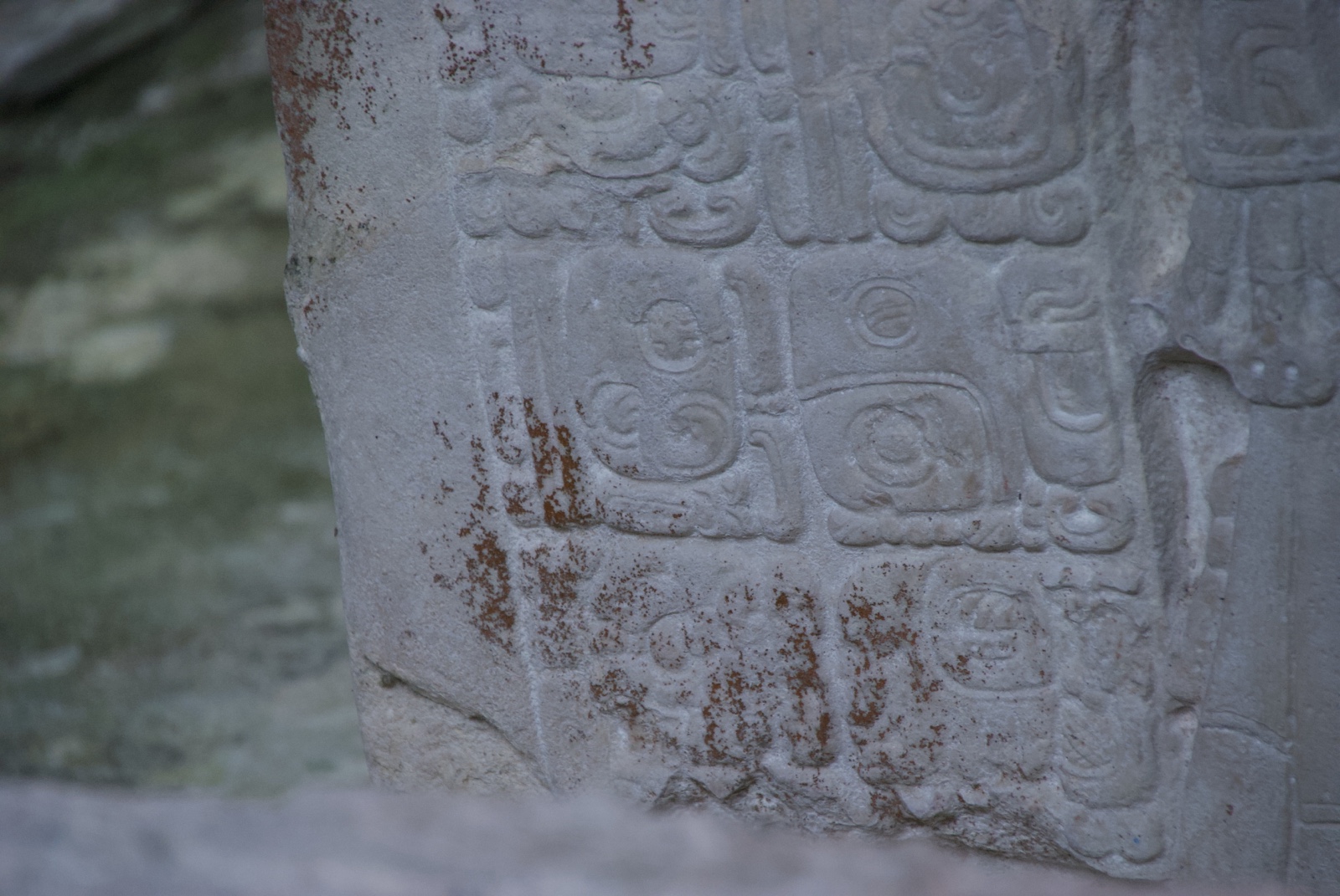 The north building at the twin pyramid complex housed a stele and altar with some nice carvings.
