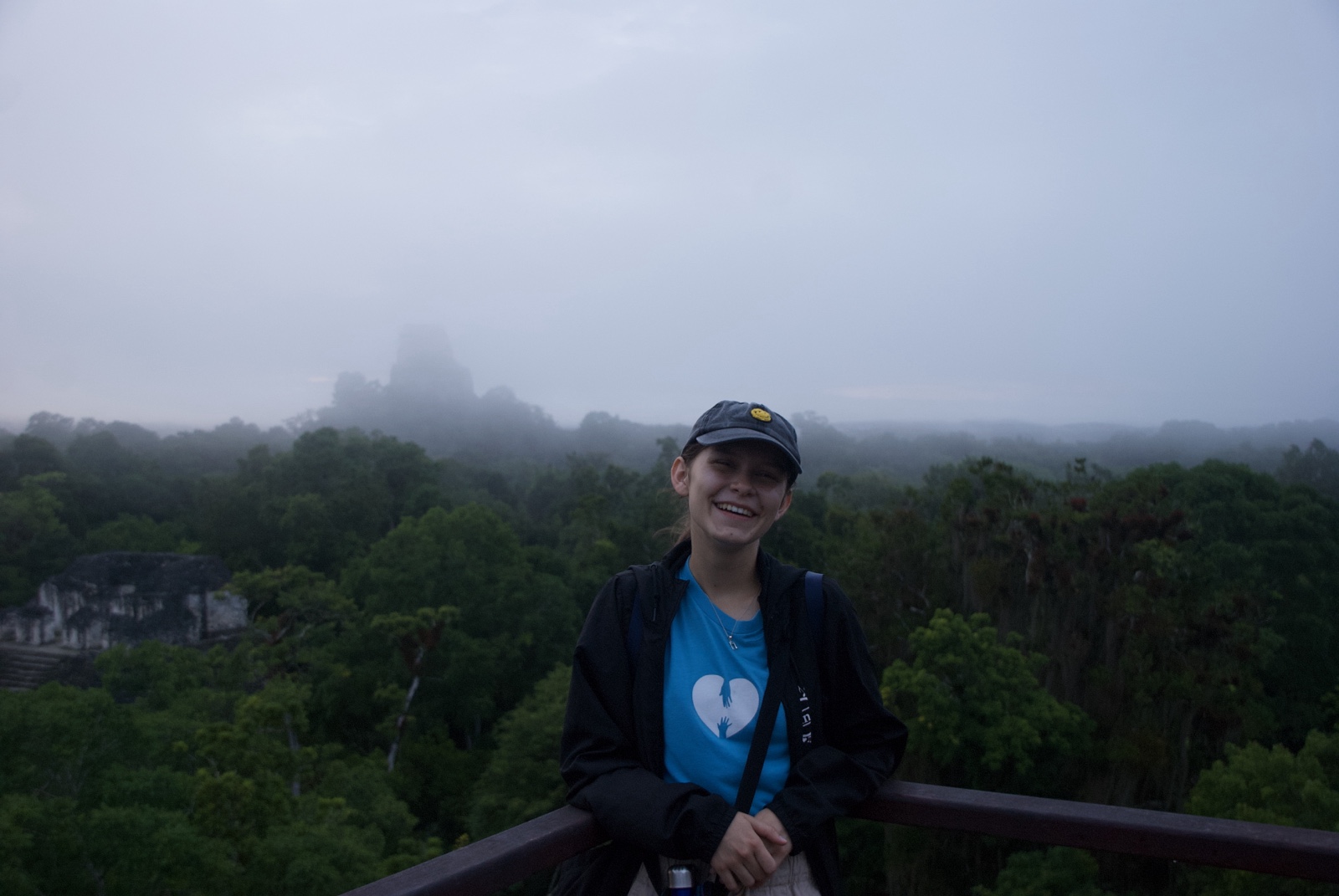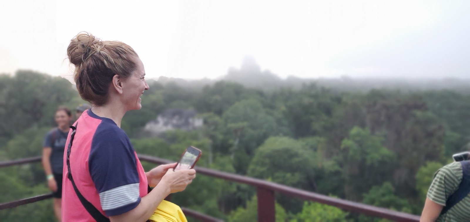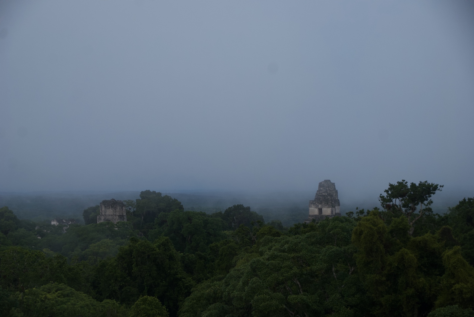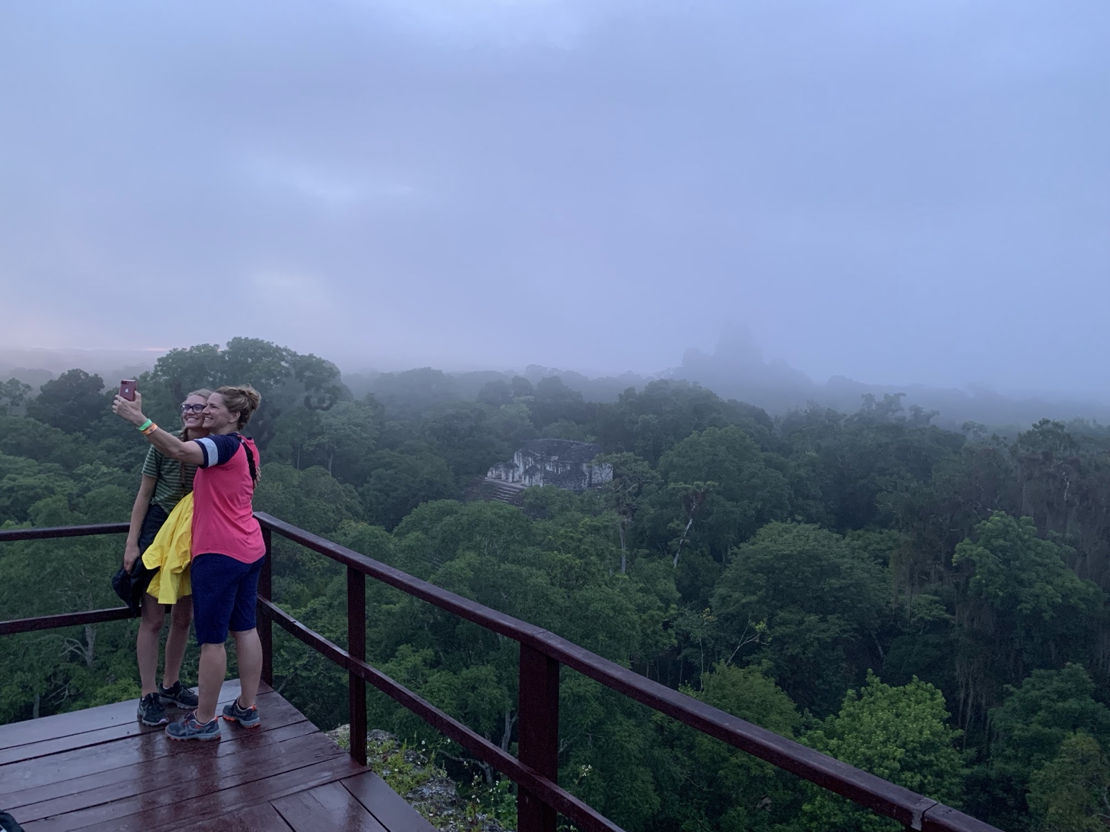 And here are a dozen more photos of people with the misty jungle pyramids in the background.