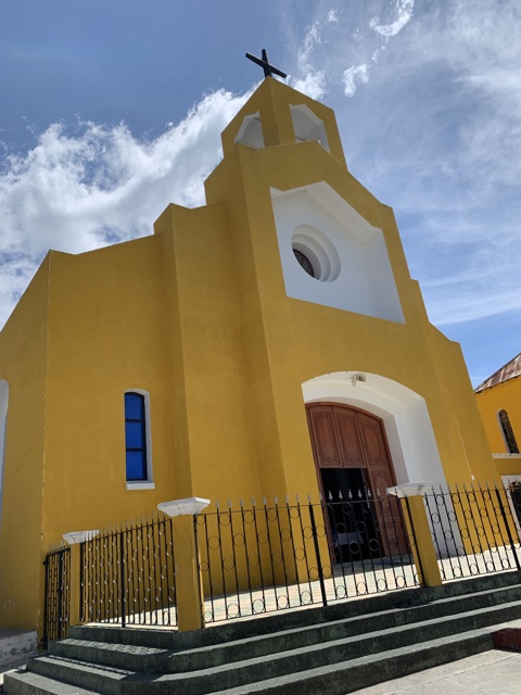 Our first destination was Sansare. Here is a vibrantly painted catholic church there.
