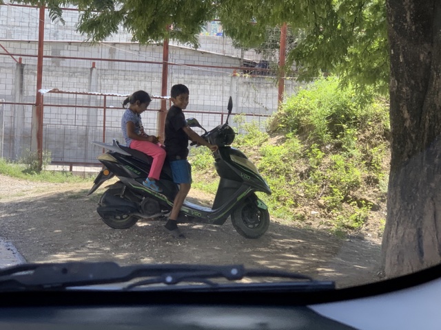 Kids there learn pretty young to ride scooters. (Not sure he's really supposed to...)