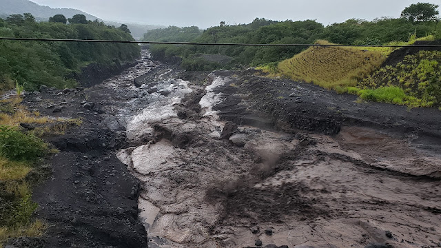They also came across this river of mud that was carved out by a lava flow, taking out the highway with it. Fortunately, they didn't have to drive through the river this time.