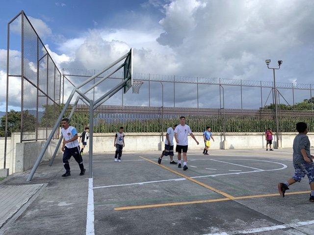 After visiting folks, they went to the church, where Jared and Marcos took part in a pick-up game of futbol (soccer).