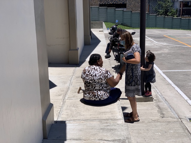 Linette chatted with this lady for a while after church. (She walked with a cane, so sat on the step while they talked).