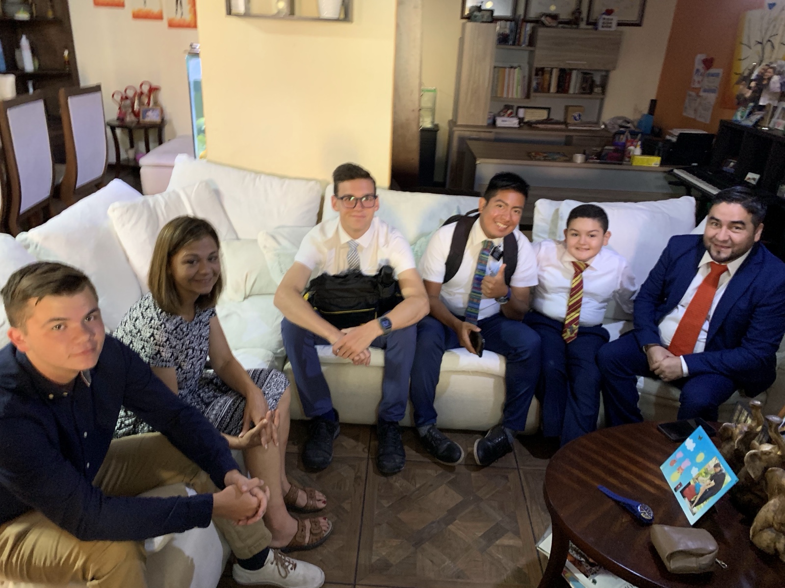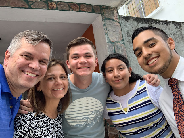This missionary was pretty new, but his Spanish was so good that it took us a while to figure that out. Apparently he had been in a Spanish immersion for many years. We took this selfie and then I texted it to his mom, along with a little message about how his Spanish was great. She responded, "Oh my goodness!!!!! You absolutely made my day! Seeing his smile and your smiles brought me joy!! Thank you!!!"