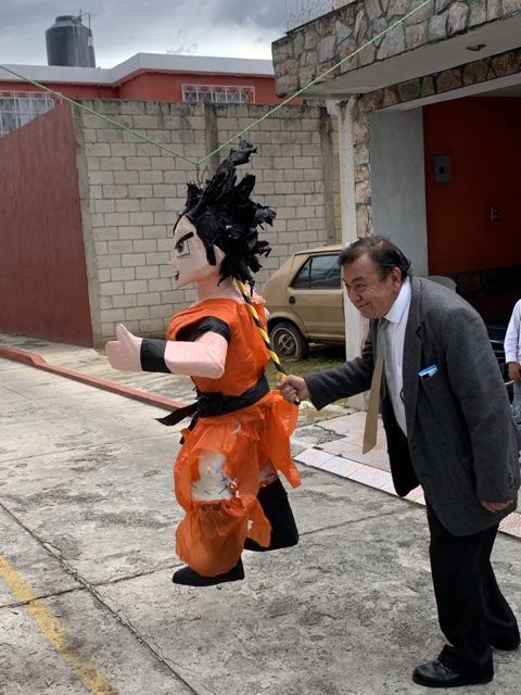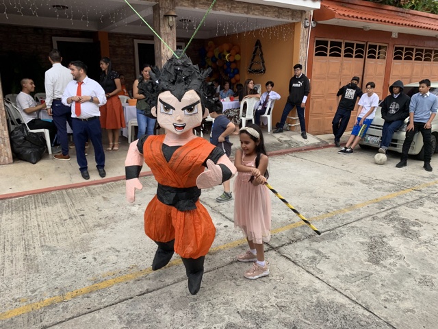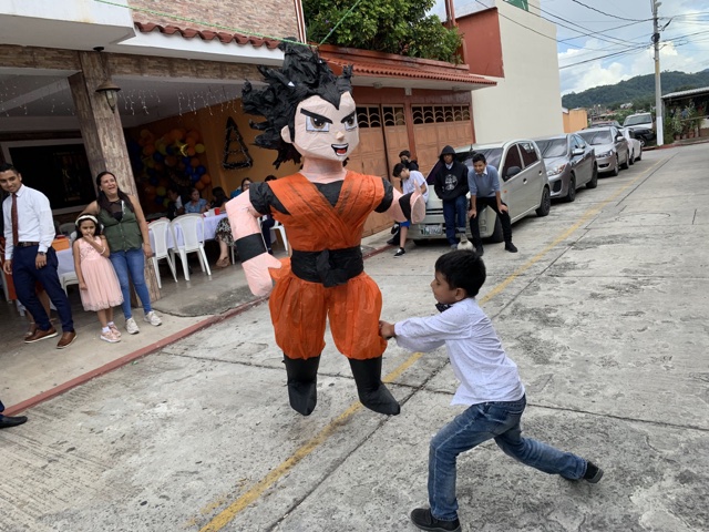 One of the central features of the party was a piñata of Goku, the hero of Dragon Ball (the movie they saw the night before).