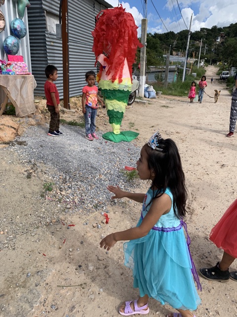 Then the whacking of the piñata began, starting with the younger ones.