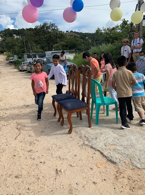 Speaking of birthday parties, Jared had also been invited to another birthday party in the tiny town of Palencia, which was about a half hour away. We weren't quite sure of the address, but when we got into town, we saw two missionaries, and they were headed to the party, too, so we just followed them as they walked along, since there wasn't room in the car for all 6 of us.