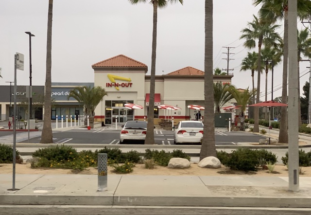 We took a free shuttle to a very nice Fairfield Inn & Suites near the airport, and then walked over to In-n-Out Burger for a late dinner. (This is a picture of it as we drove by it the next morning in our shuttle).