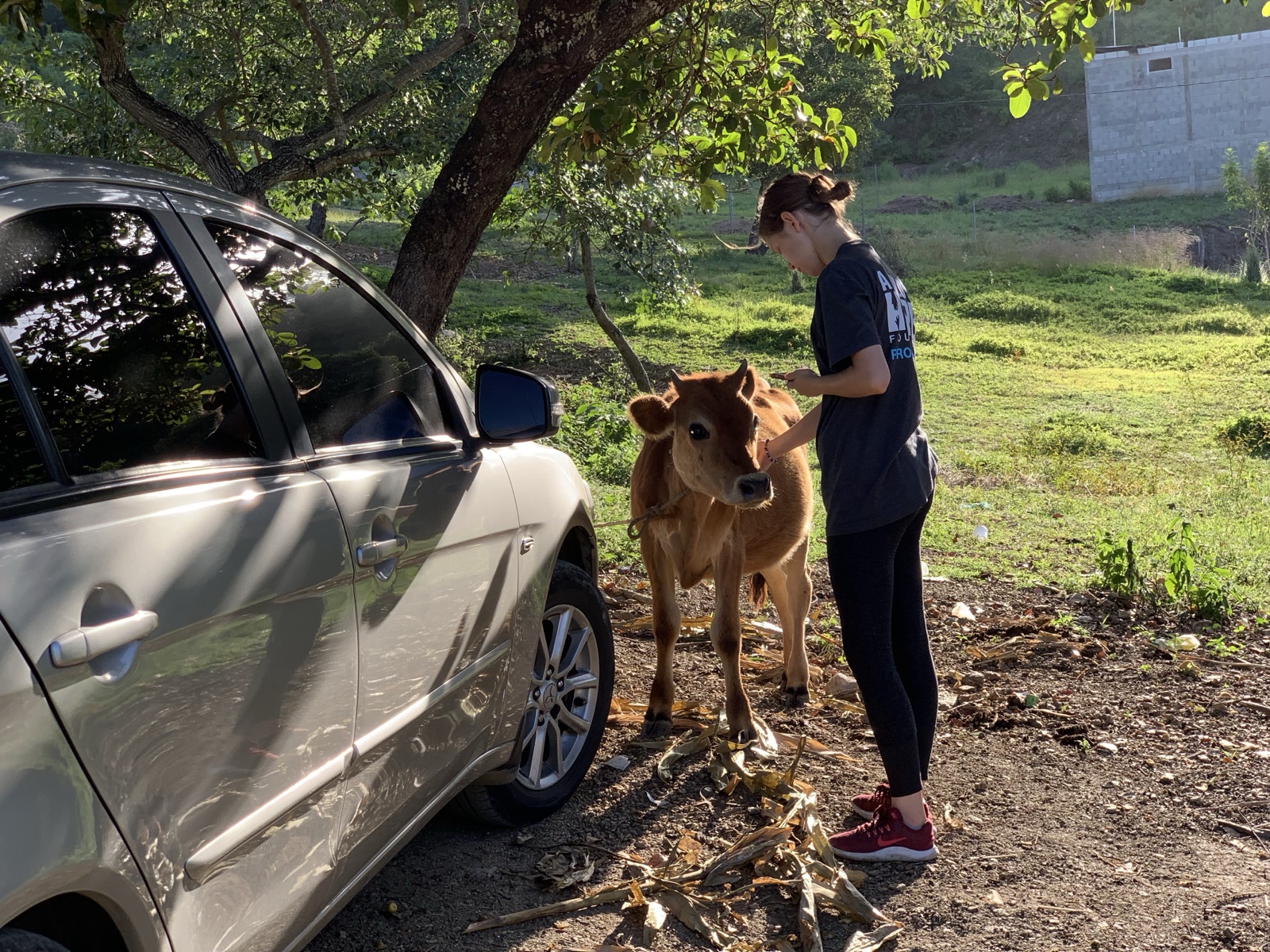 We went to visit another guy out in the country, and parked our car in front of this cow.