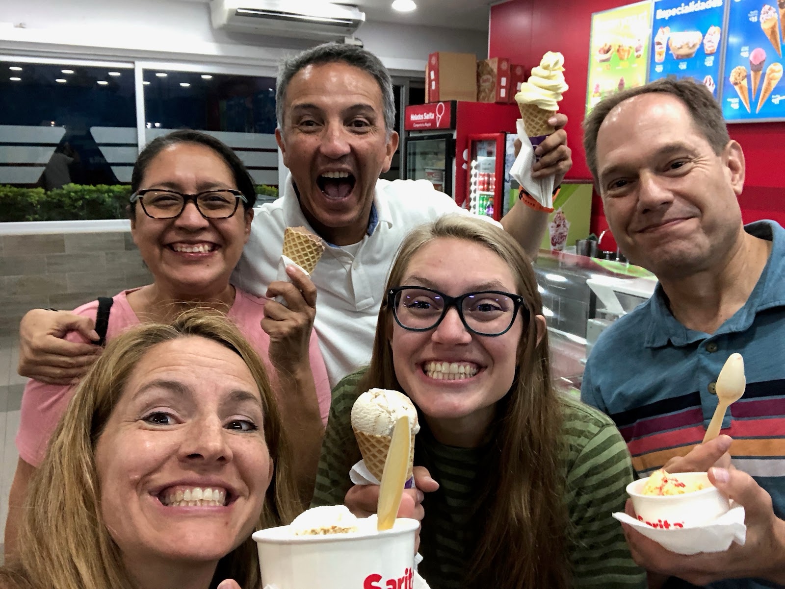 They had fun visiting the Orozco family in Escuintla that day. Sharon reported, "Meeting Mikayla’s friends she met while on her mission was a highlight of our trip and a great way to cap things off! ...the Orozco family took us to have hot chocolate while overlooking a volcano (which we saw blowing smoke and later lava!). Then after ice cream, we went back to their place for tamales. They went out of their way to make sure we had a great day, and we loved meeting them!"