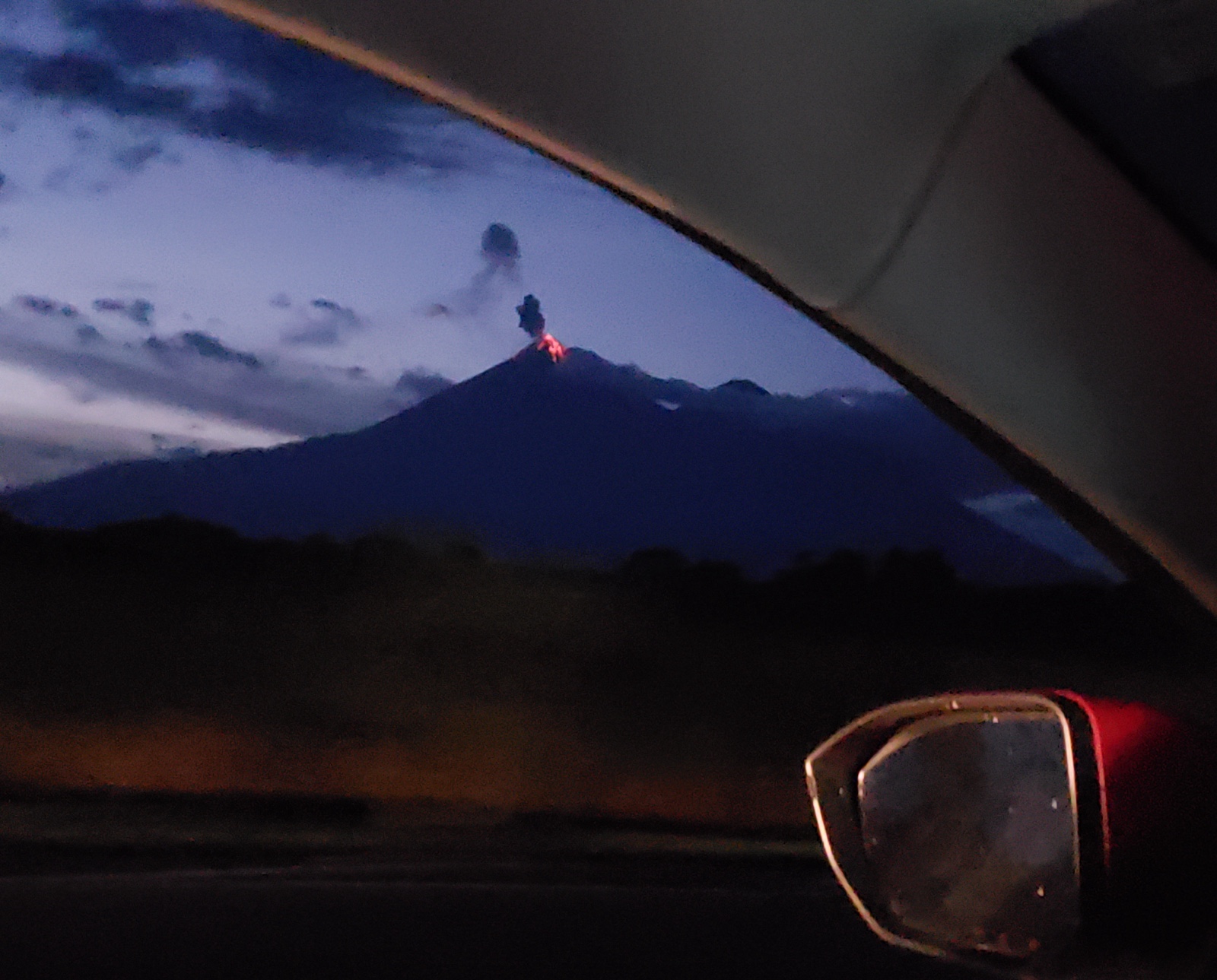 Speaking of volcanoes, they saw this one erupting, shooting off a plume of ash more than once.