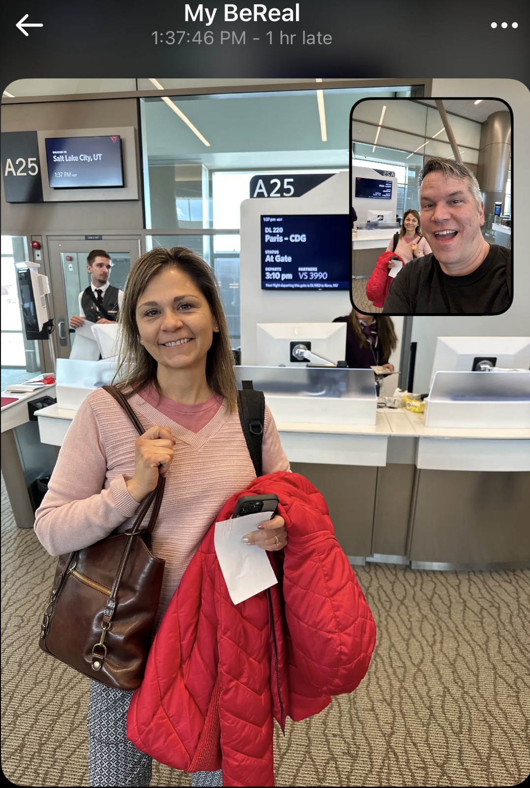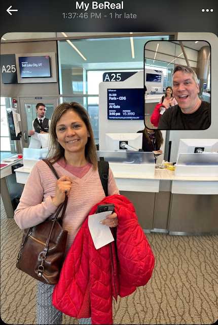 When "BeReal" activated, we were at the gate for our first flight, which was to Paris.