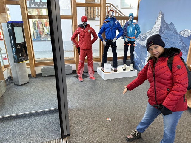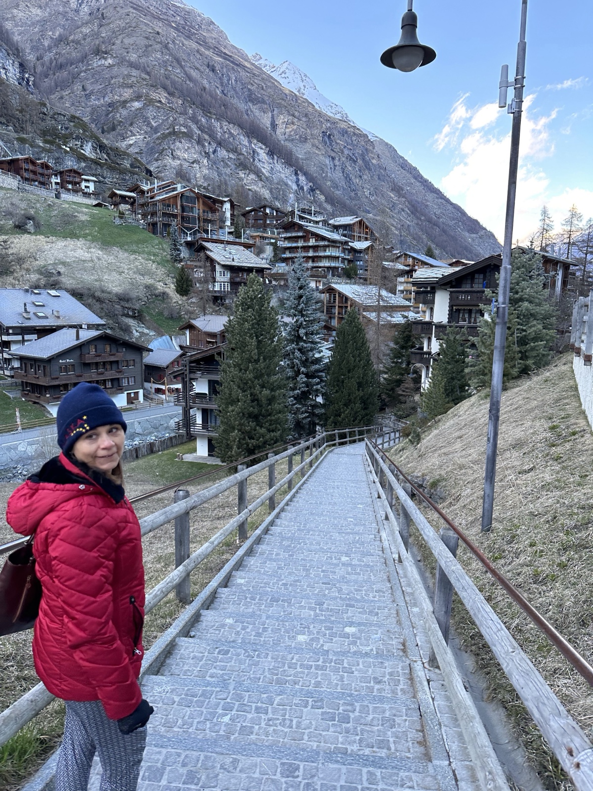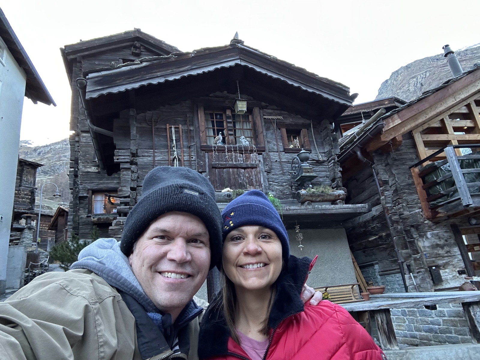 The town of Zermatt is at an altitude of 5200 feet, and it was cold there, so we wore hats and a few layers.