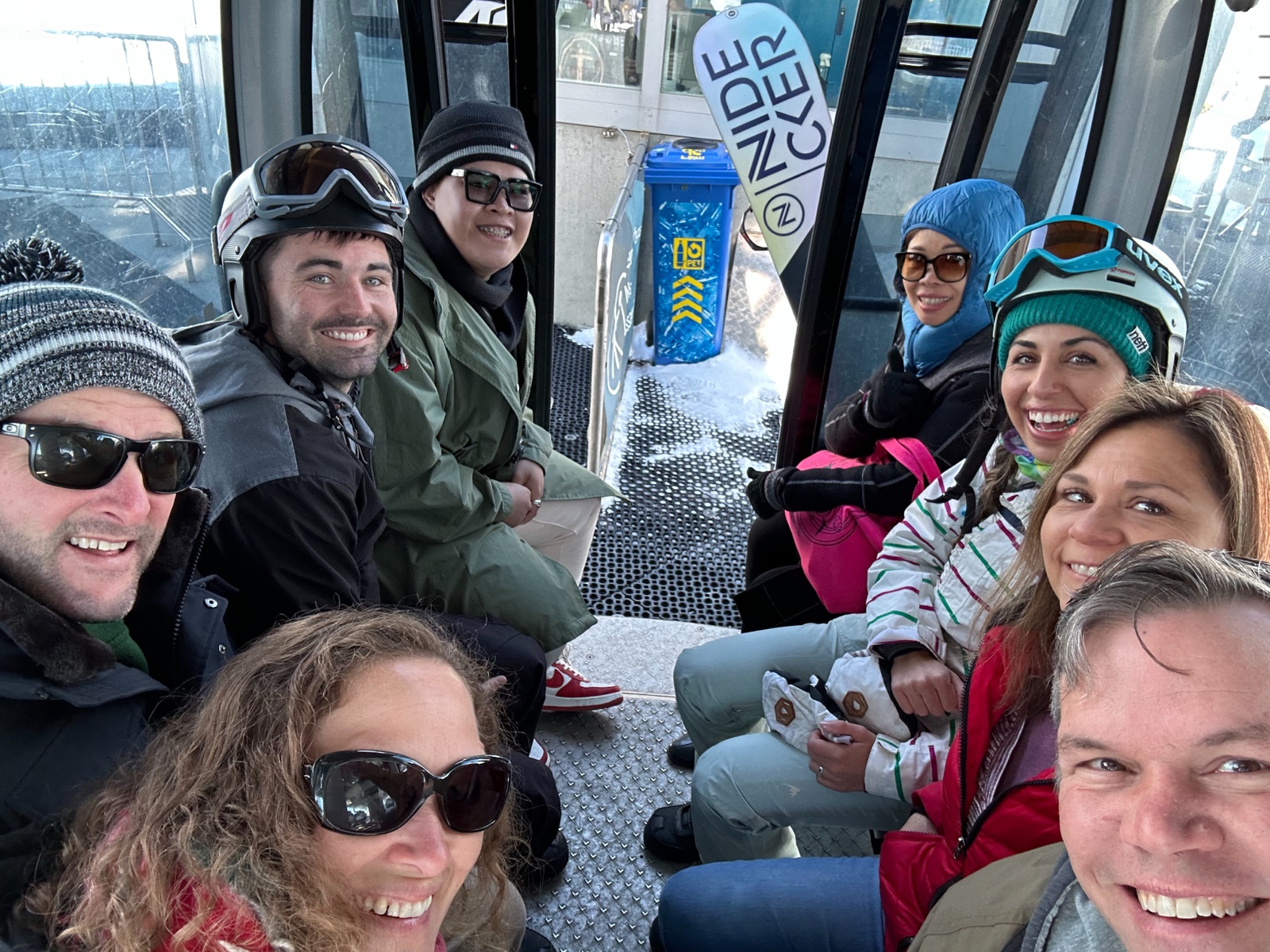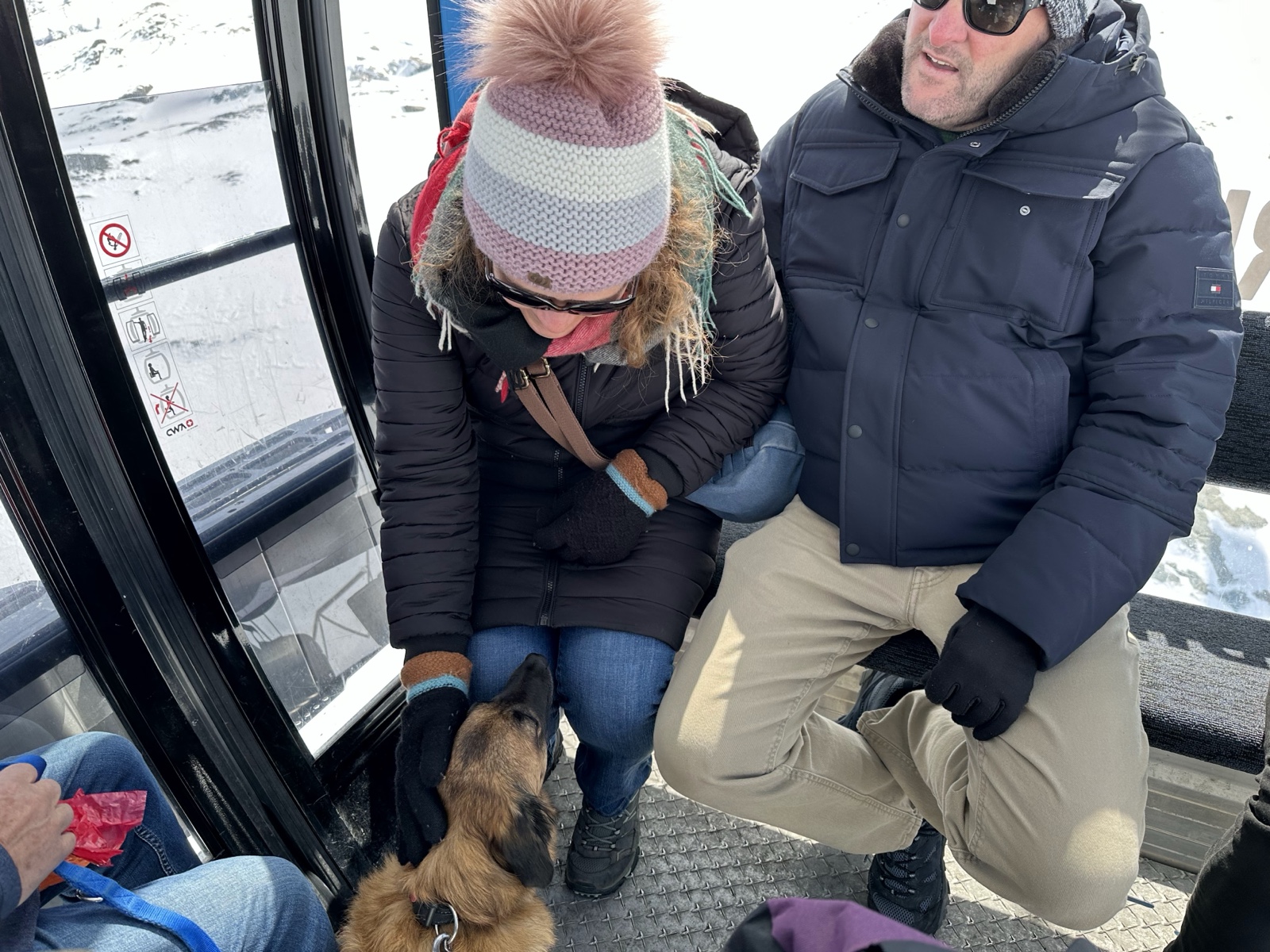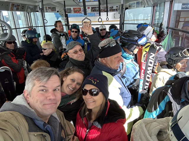 We rode with snowboarders and others on the way up, and had a lively conversation.