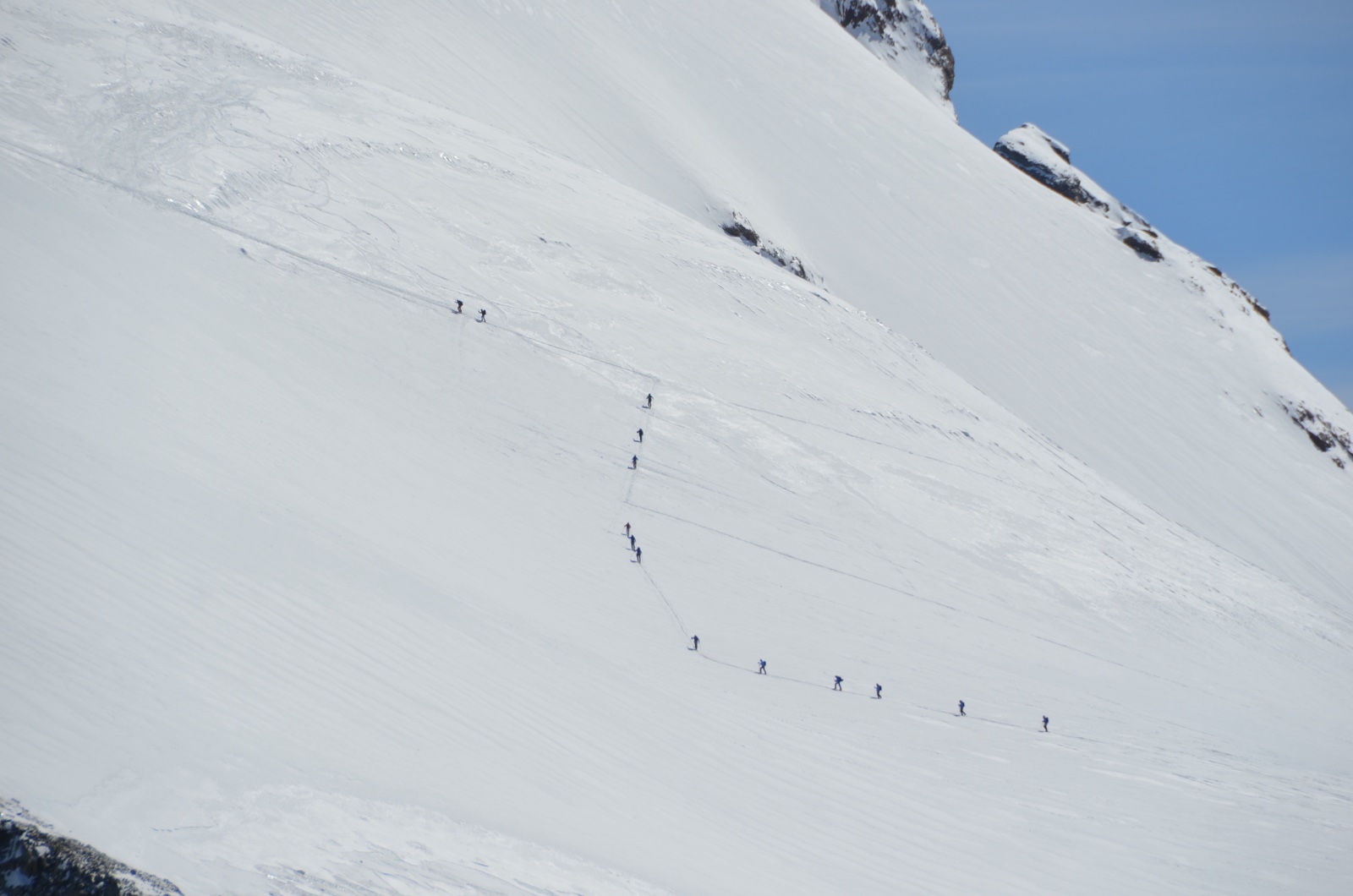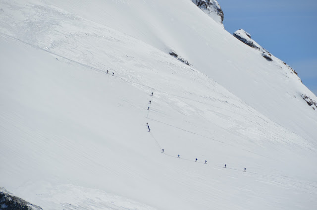 A closer look at Breithorn showed that there were people hiking along the glacier to get to its peak.
