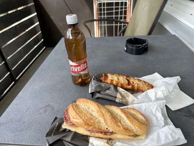 Things are expensive in Switzerland. Eating at a restaurant often costs 20 to 30 Swiss Franks ("CHF"), which is $22-$33 in U.S. Dollars. So one way to avoid that is to go to the "Coop" grocery stores and grab a prepared sandwich for 6 bucks. I also grabbed a breaded hot dog at the bakery, and it was ok. We went up to our AirBnB and sat on the balcony to eat lunch, since it had a nice, pleasant view.