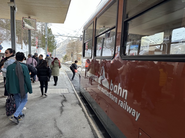 We parked the car in the town of Täsch, where the road ends, and then took a train up to the town of Zermatt, where only certain service vehicles (mostly electric) are allowed.