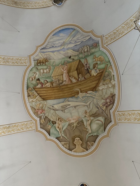 This ceiling painting depicts Noah's ark.