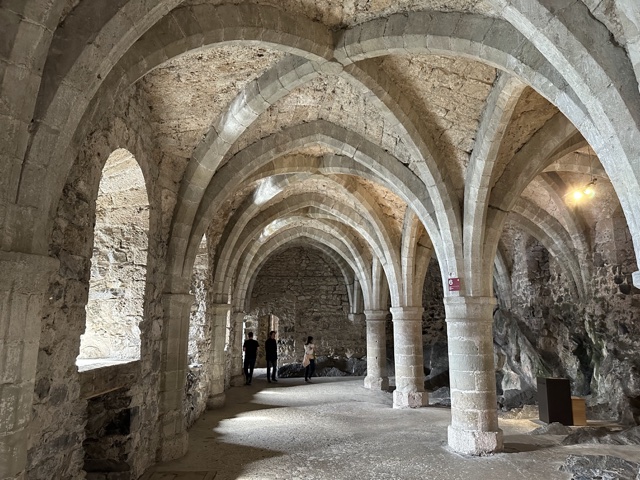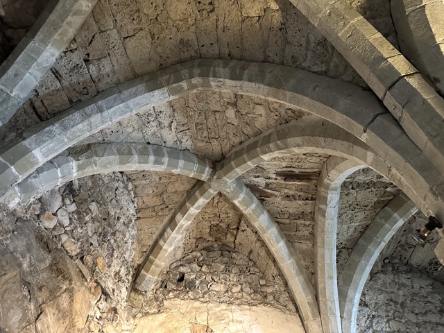 The ceiling is an interesting mix of elegant arches and rough brickwork.