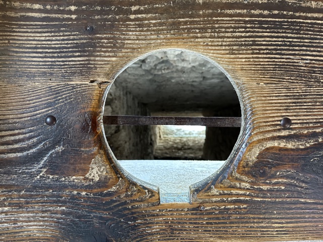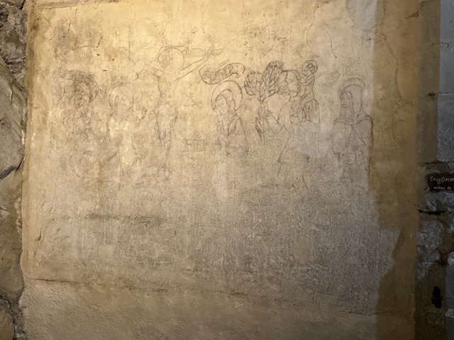 Some original grafiti still exists on the wall from the prisoners.