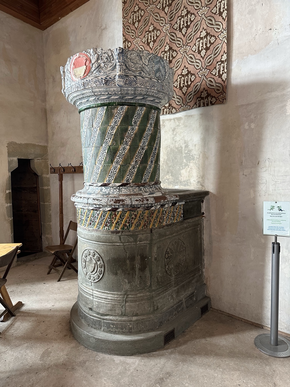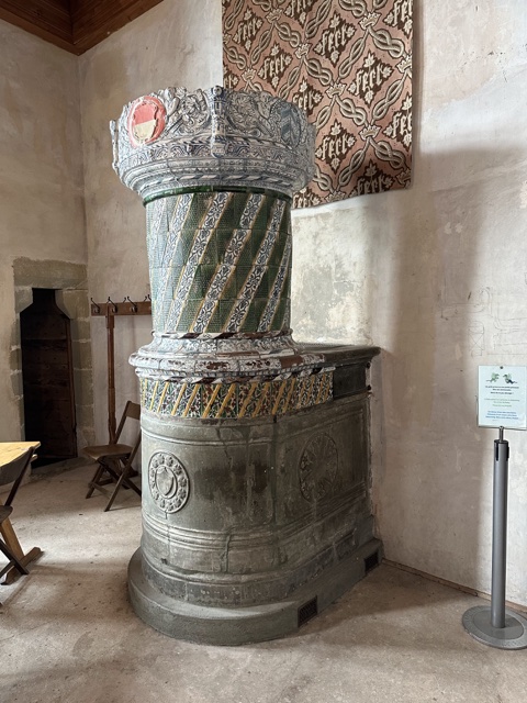 Some rooms had a ceramic stove that radiated heat like a Franklin stove does.
