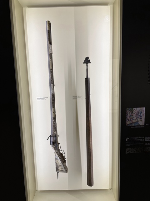 This rifle had interesting decorations all over it.