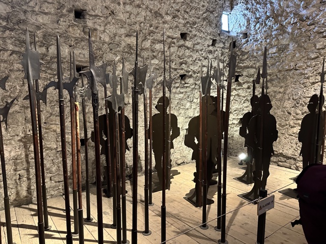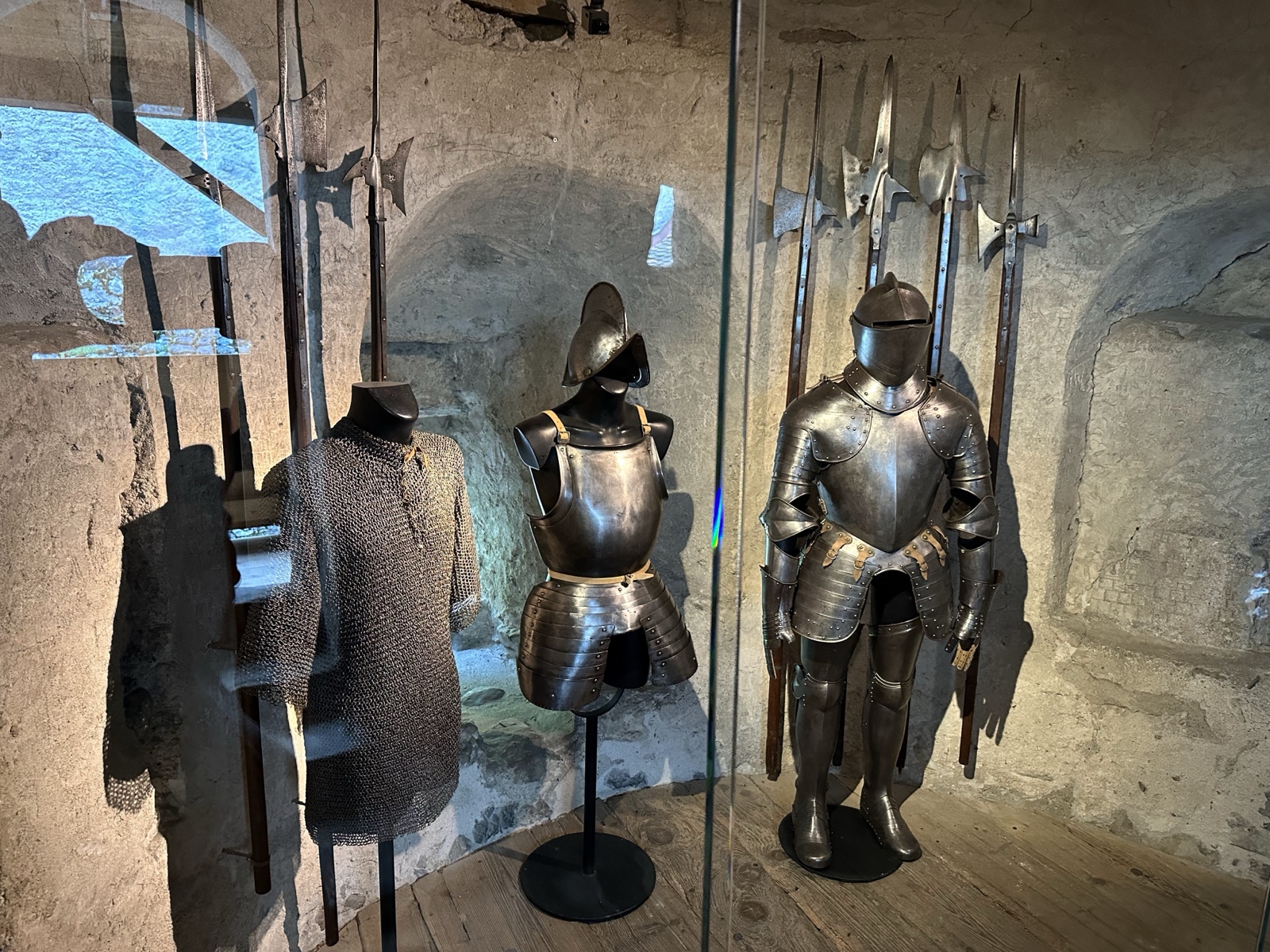 Here is a suit of chain mail, plate armor, and some spears and halberts from back in the day.